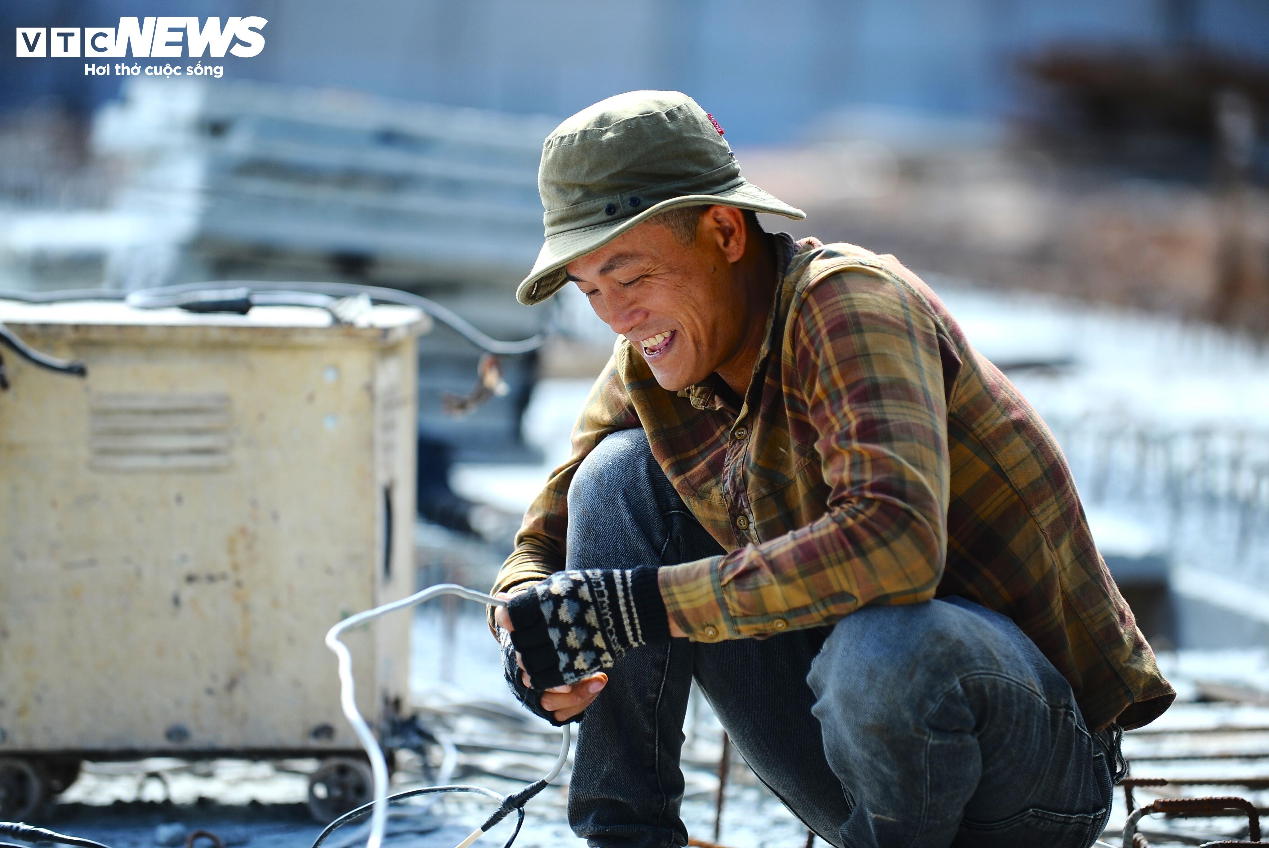 Hiện tại, thời tiết đang thuận lợi, nhiều công nhân tập trung để chuẩn bị thi công mặt cầu, thành cầu, lan can...