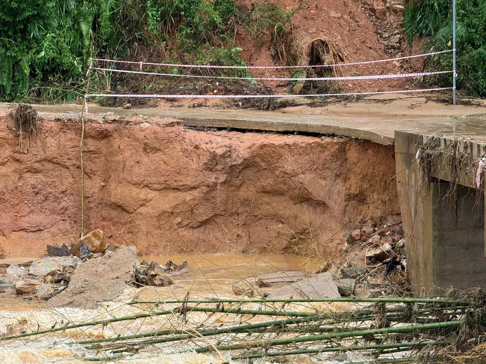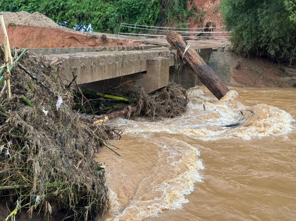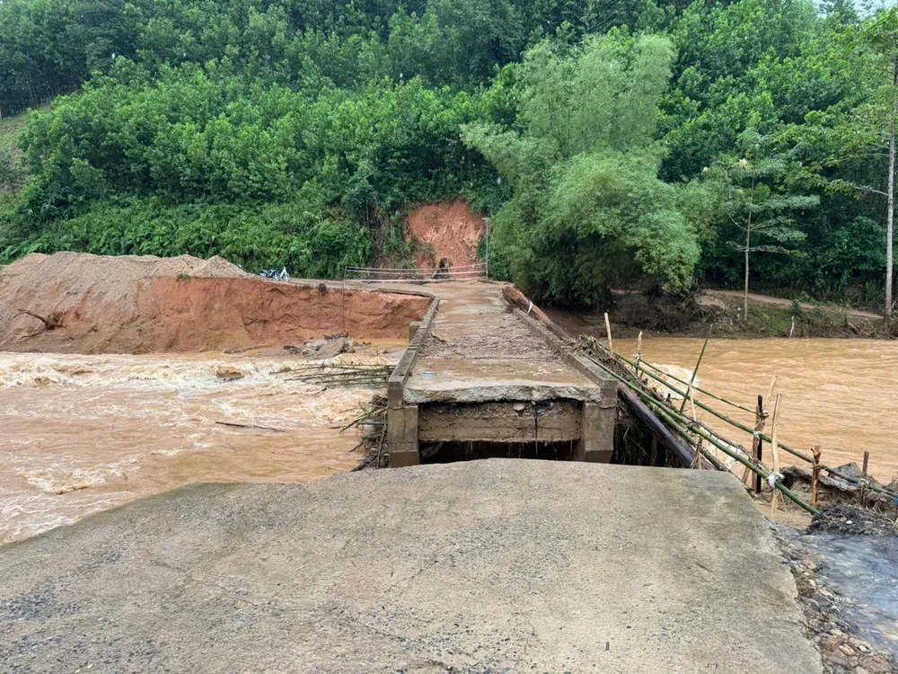 Theo người dân địa phương, mưa lớn kéo dài từ ngày 16-11 đến nay khiến nước lũ dâng cao đột ngột, gây sập cầu trong sáng 17-11.