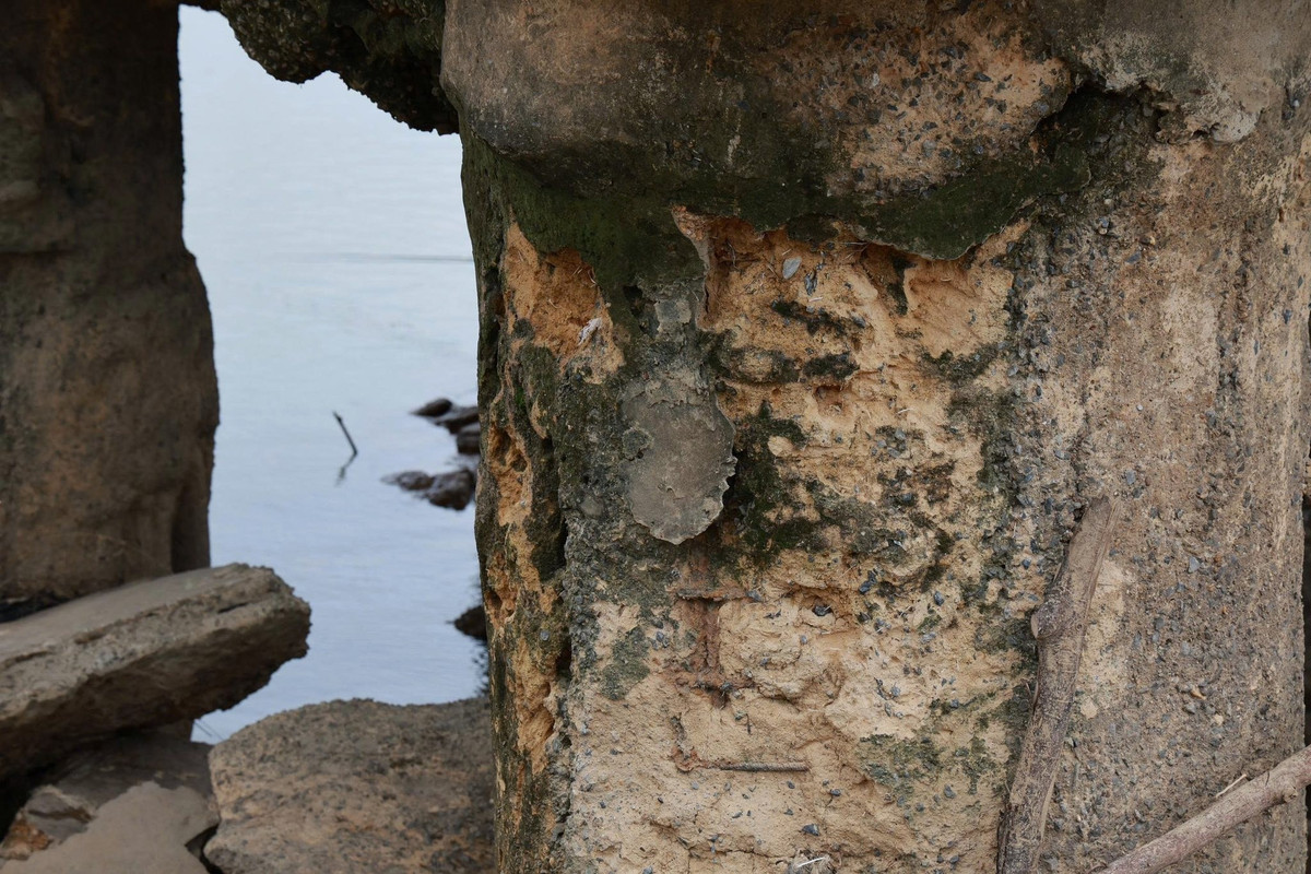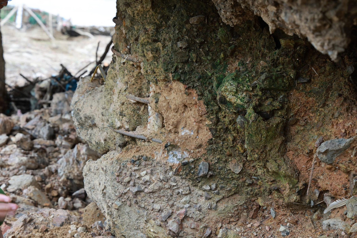 Phần cốt thép rỉ sét lộ ra, mất hoàn toàn lớp bê tông bảo vệ
