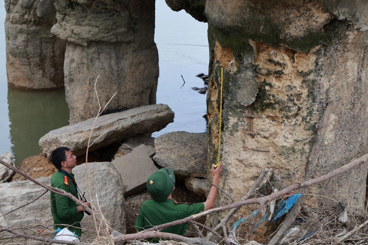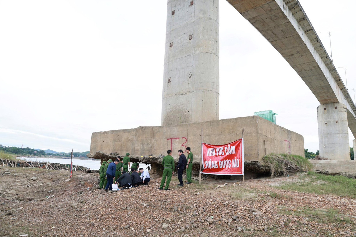 Lực lượng chức năng kiểm tra trụ cầu sông Lô