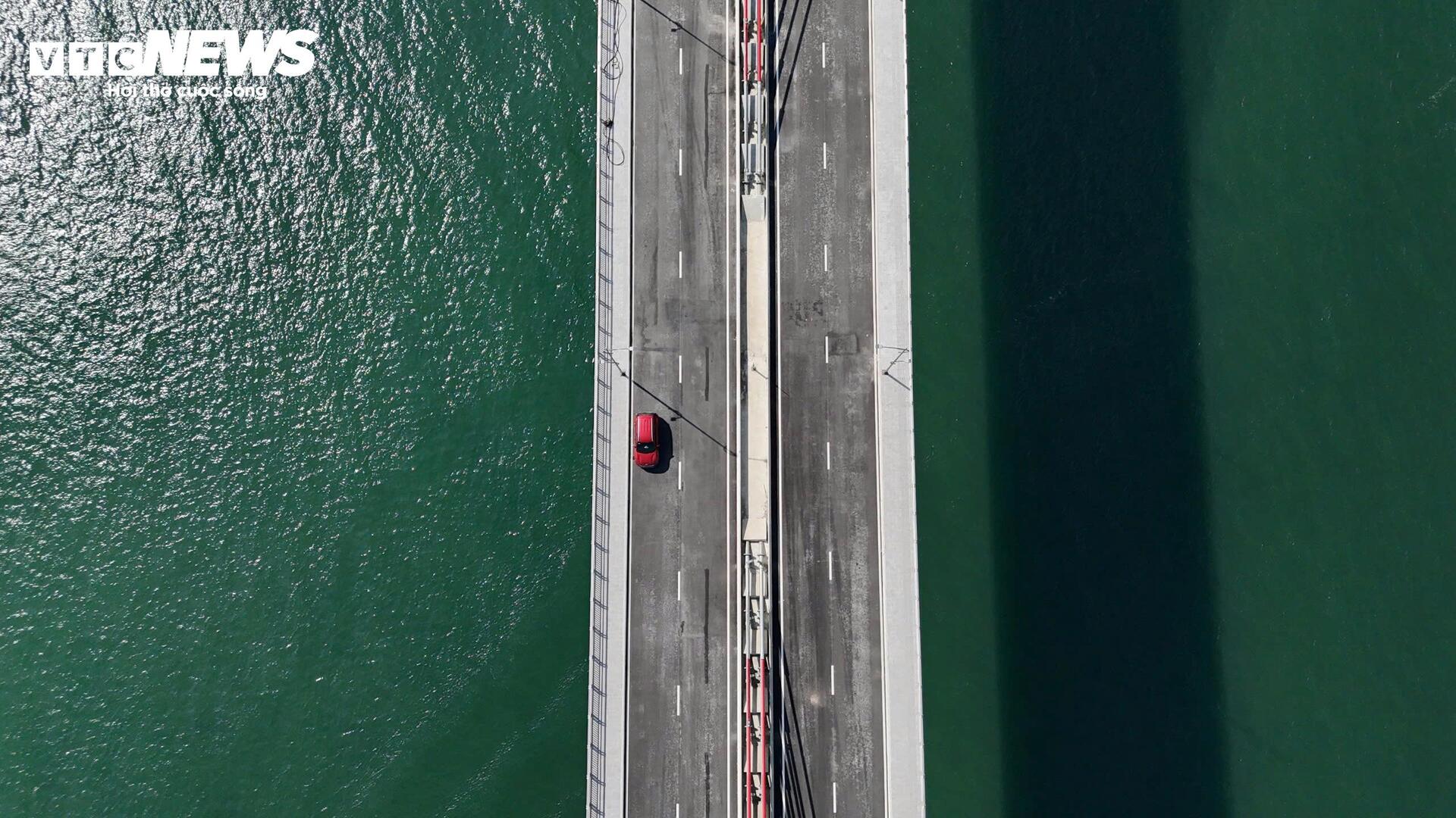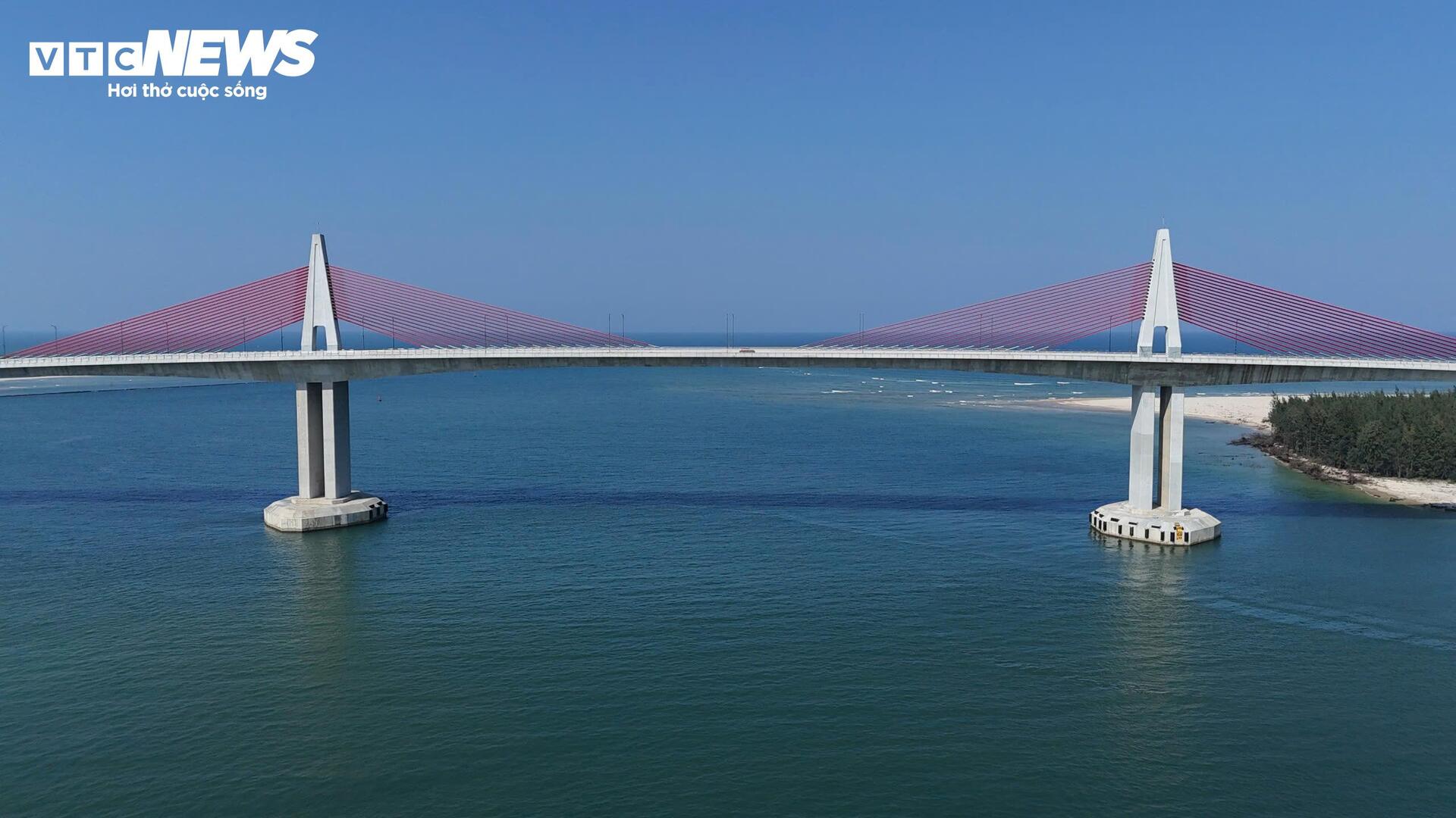 Cầu dài và có độ cao ấn tượng nằm vắt ngang vùng cửa biển rộng và thoáng nên đứng cách xa hàng cây số vẫn dễ dàng nhìn thấy công trình.