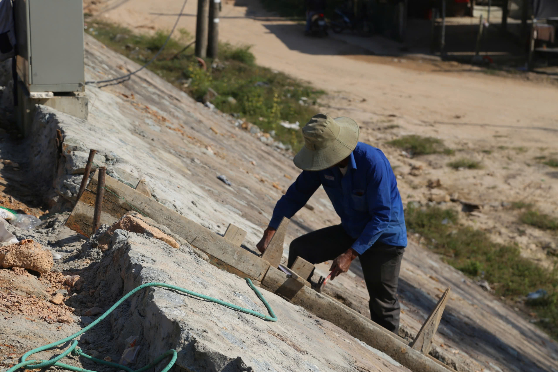 Đường dẫn lên cầu đoạn phía Nam còn khá ngổn ngang, nhiều hộ dân đang trong quá trình bàn giao mặt bằng. Đoạn này có chiều dài 2,19km, dự kiến thi công kéo dài đến quý II năm nay, với điều kiện được bàn giao toàn bộ mặt bằng sớm.