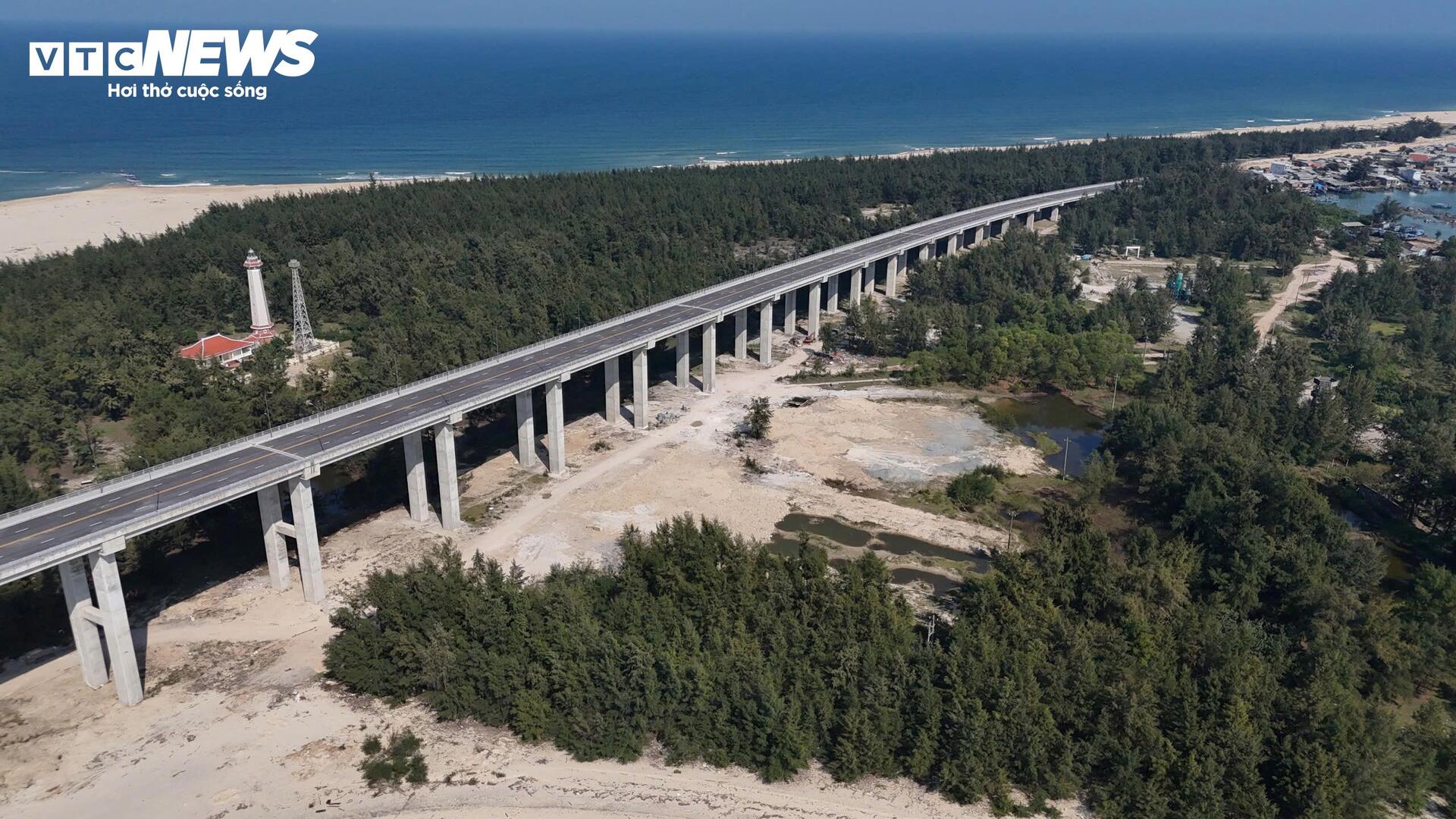 Ghi nhận của PV Báo Điện tử VTC News đến đầu tháng 3/2026, toàn bộ các hạng mục của công trình cầu vượt cửa biển Thuận An cơ bản hoàn thiện.