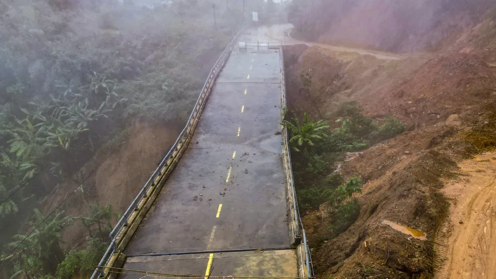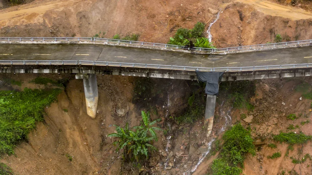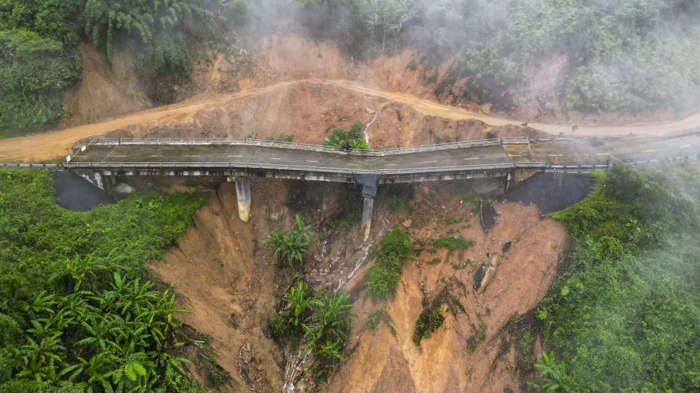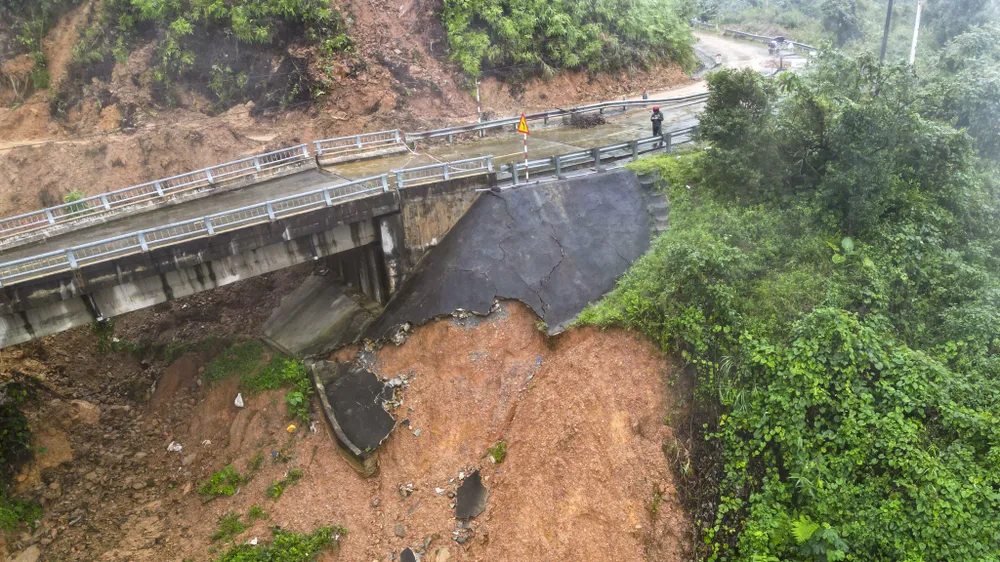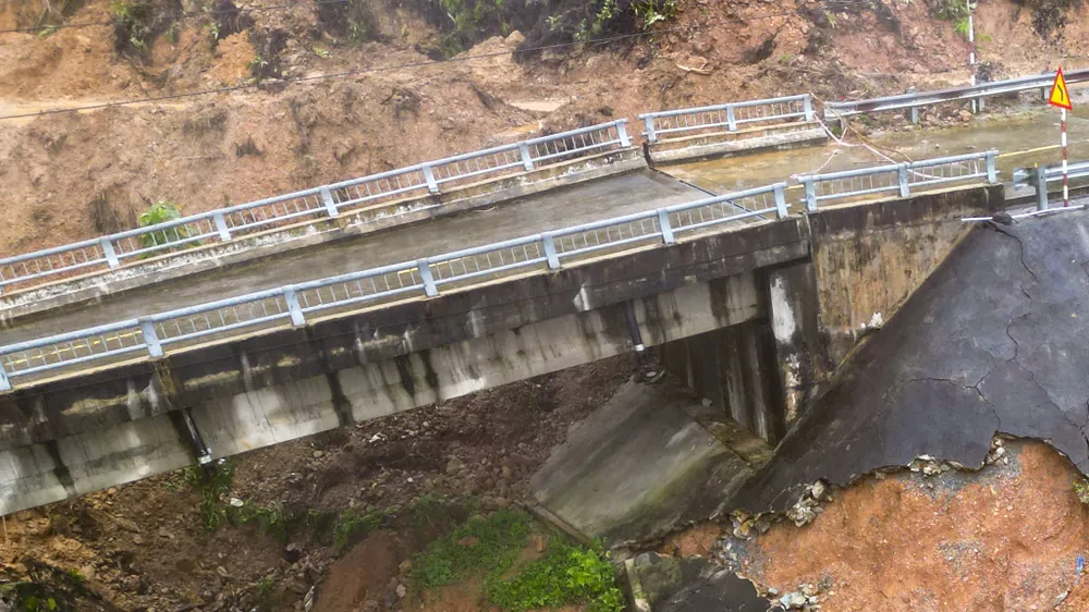 Do ảnh hưởng của bão số 12 và đợt mưa lũ kéo dài vào cuối tháng 10 và đầu tháng 11 vừa qua đã khiến hạ tầng giao thông tại đây bị tàn phá nặng nề. Đặc biệt, tại cây cầu cạn bị sạt lở đất xô lệch, buộc Bộ Xây dựng phải công bố tình huống khẩn cấp.