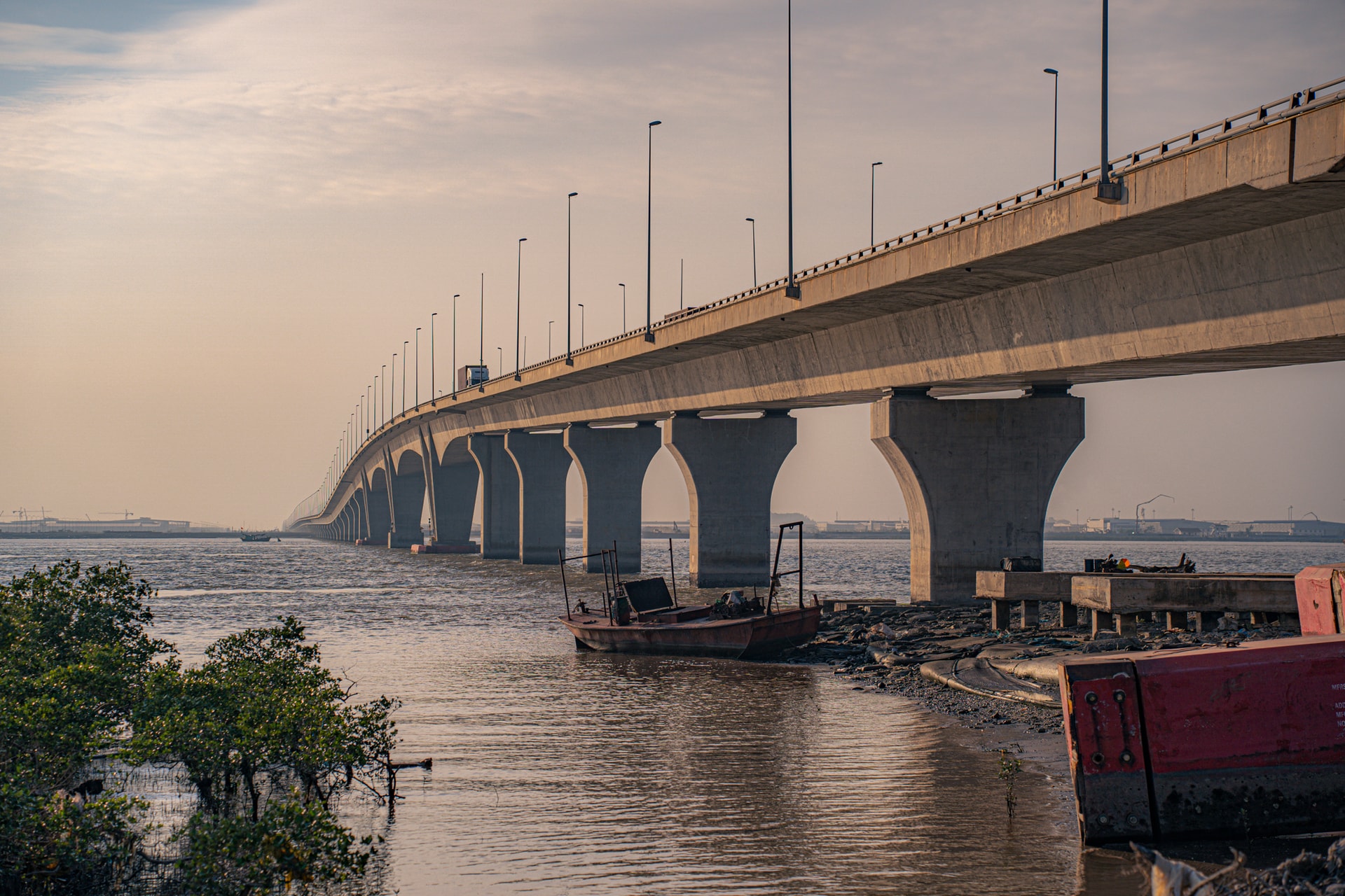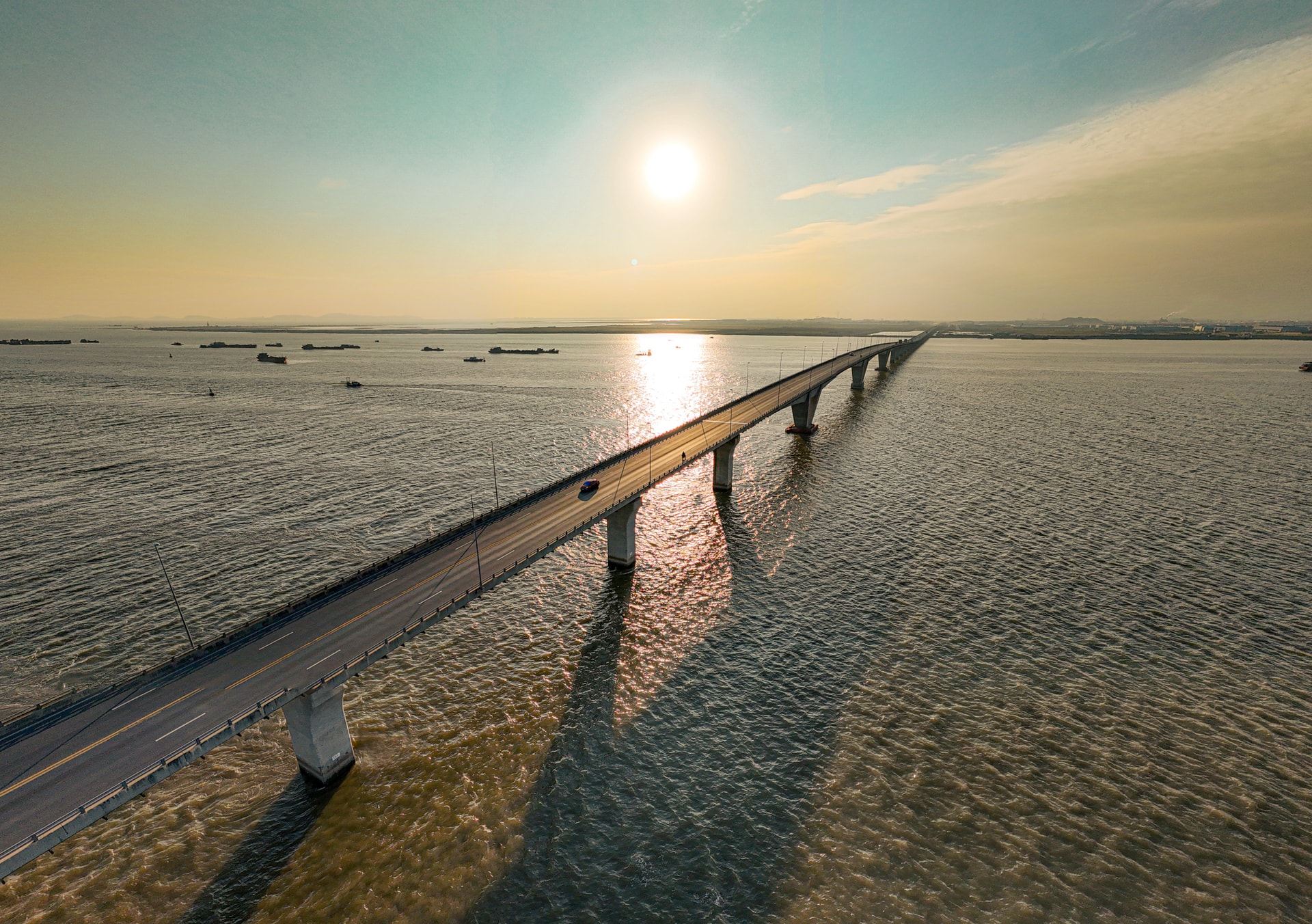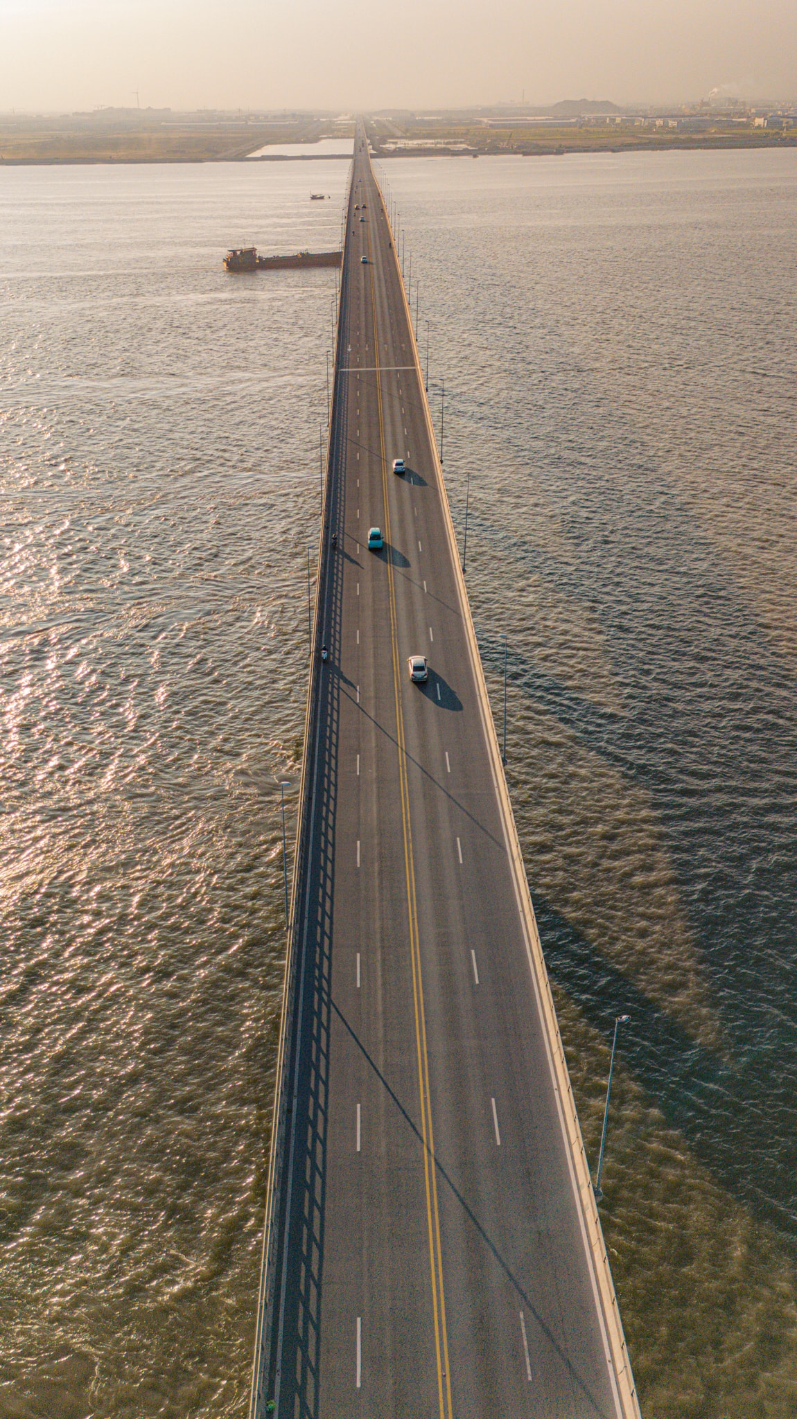 Những trụ cầu khổng lồ được thiết kế chịu tải trọng lớn và chống ăn mòn trong môi trường nước mặn, đảm bảo khả năng vận hành ổn định trước gió bão và sóng lớn - thách thức đặc thù của các công trình giao thông trên biển.