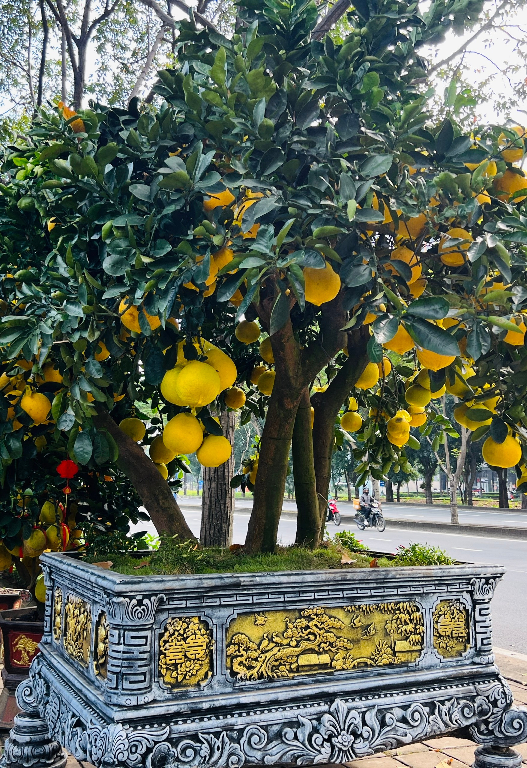 Chậu bưởi Diễn size cực đại đang được trưng bày tại nhà vườn Thanh Giang (đường Mai Chí Thọ, phường Bình Trưng, TP.HCM) gây choáng ngợp với mức giá lên tới 150 triệu đồng. Theo anh Cao Quang Hà (chủ vườn), đây là một trong những chậu bưởi hiếm nhất từng được vận chuyển vào TP.HCM dịp Tết.