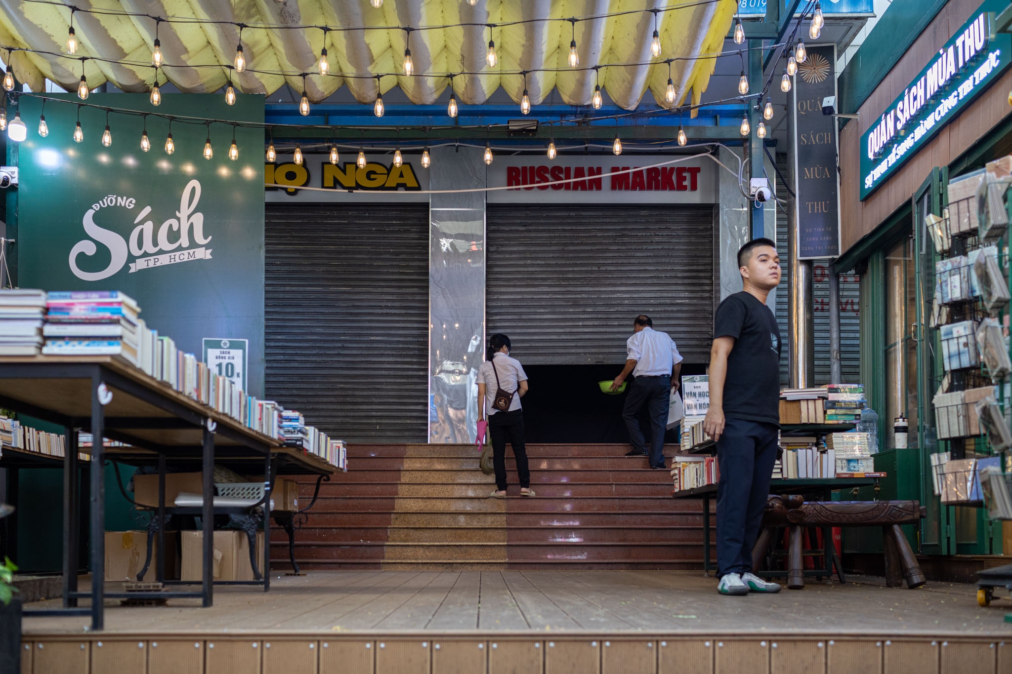 Những ngày gần đây, khách đến tham quan Đường sách Nguyễn Văn Bình bất ngờ với biển hiệu, lối vào hai khu vực kinh doanh được gắn biển "Chợ Nga" và The Box Market.