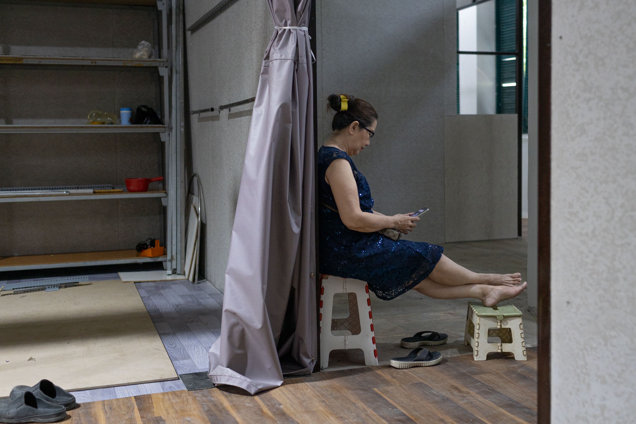Bà Ngọc Minh (60 tuổi) là tiểu thương từ chợ Nga ở khu vực đường Võ Văn Kiệt chuyển về đây. Bà Ngọc Minh thuê mặt bằng trên tầng một với giá 19 triệu/ tháng để bán quần áo. Hiện, bà đang chỉnh trang gian hàng và lắp đặt tủ các quần áo, chờ ngày mở bán.