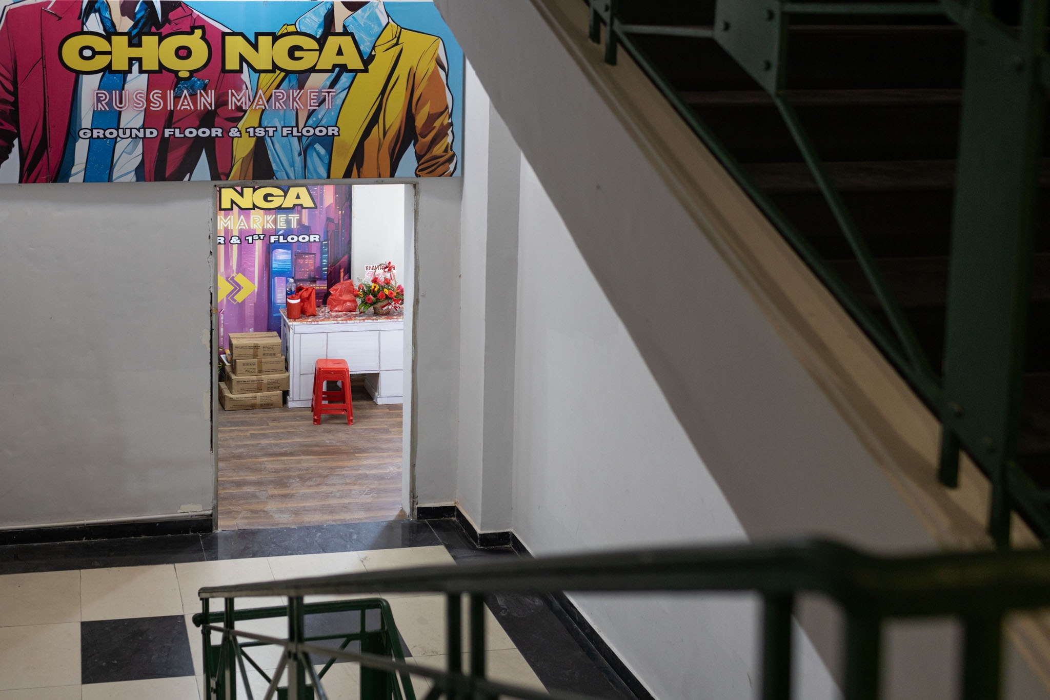 Trong hình là lối vào khu vực gắn biển "Chợ Nga" tại tầng một. Trước đó, "Chợ Nga" được đặt tại địa chỉ số 328 Võ Văn Kiệt, thành lập vào năm 2009 bởi một du học sinh Việt Nam từng học ở Nga. Chợ Nga nổi tiếng với các mặt hàng giữ ấm, cho cộng đồng người Nga và du khách quốc tế khi đến TP.HCM.