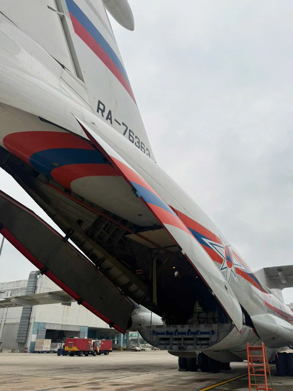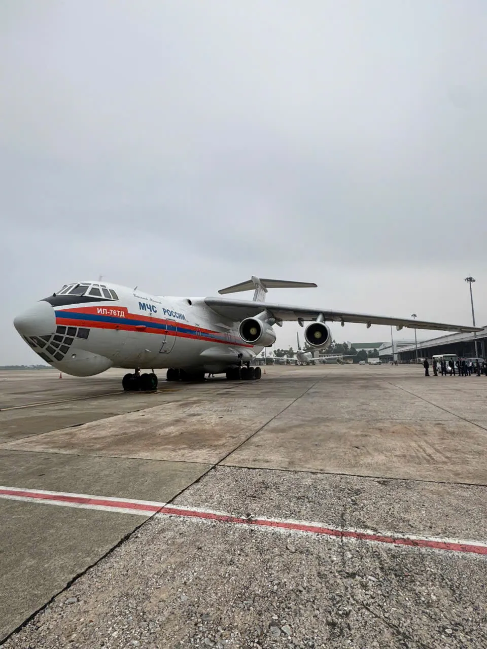 Chuyên cơ mang số hiệu SUM-9121 của Bộ Tình trạng khẩn cấp Liên bang Nga hạ cánh tại sân bay Nội Bài, Hà Nội sáng ngày 30/10.