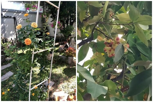 Trong khu vườn, nữ nghệ sĩ còn trồng hoa và cây ăn trái. Ảnh chụp màn hình