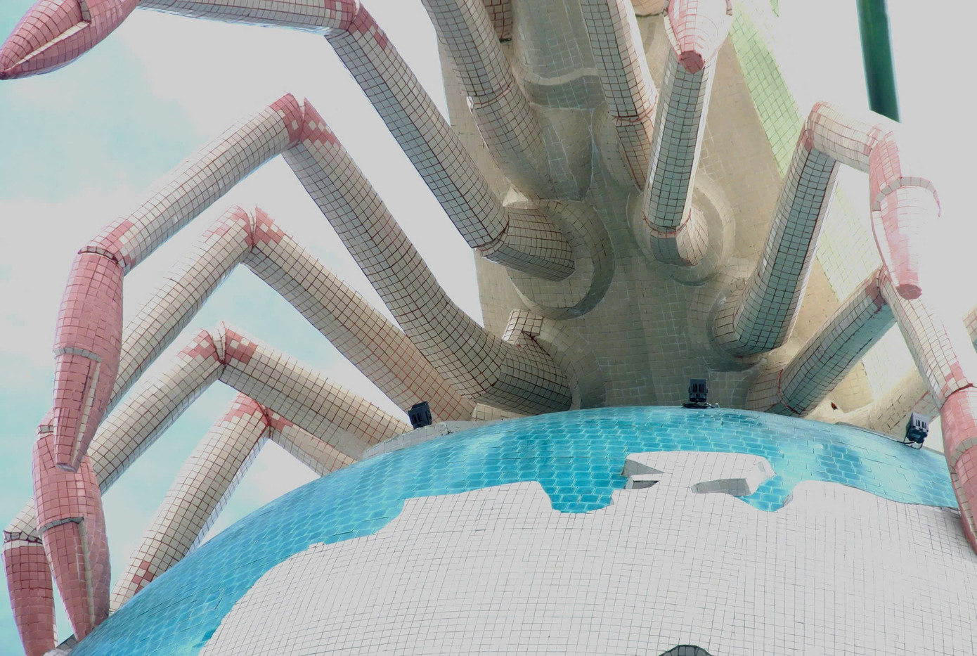 Biểu tượng con tôm được xây kiên cố bằng bê-tông cốt thép, ốp gốm và đá, thiết kế 3D hiện đại.