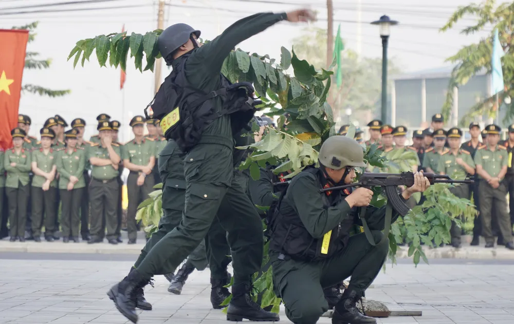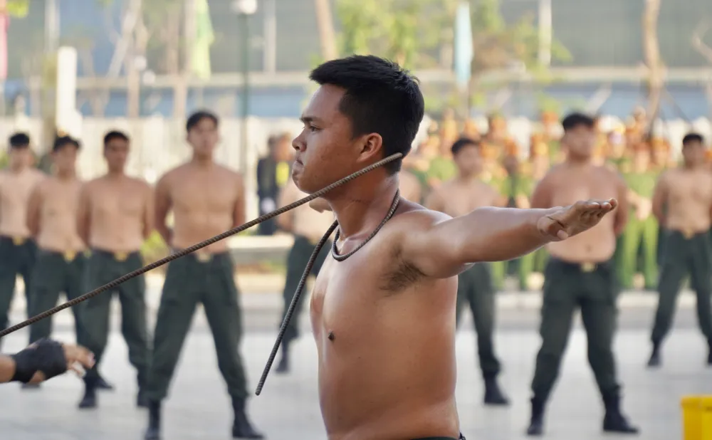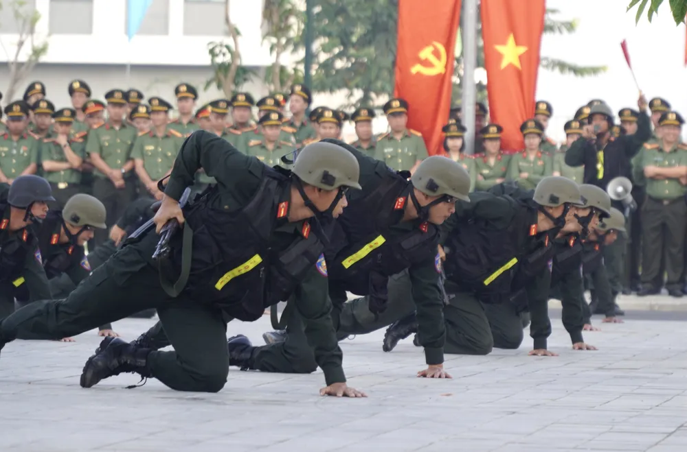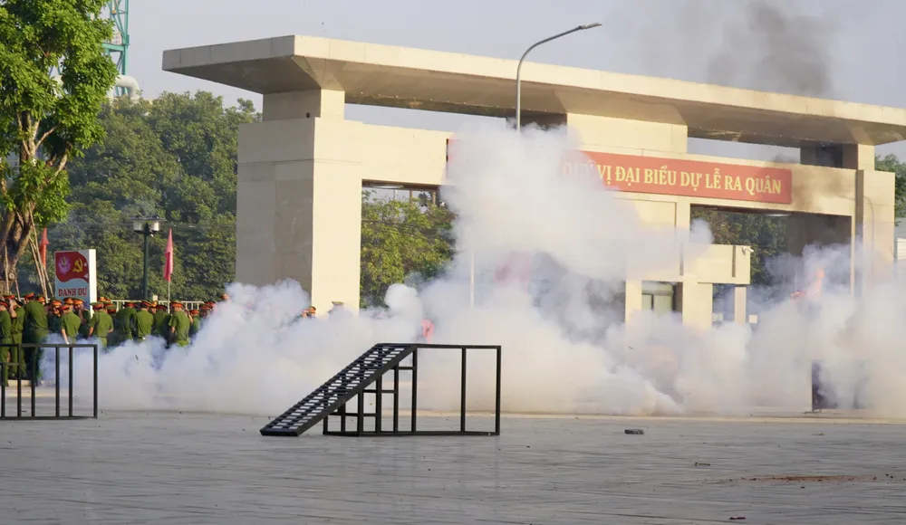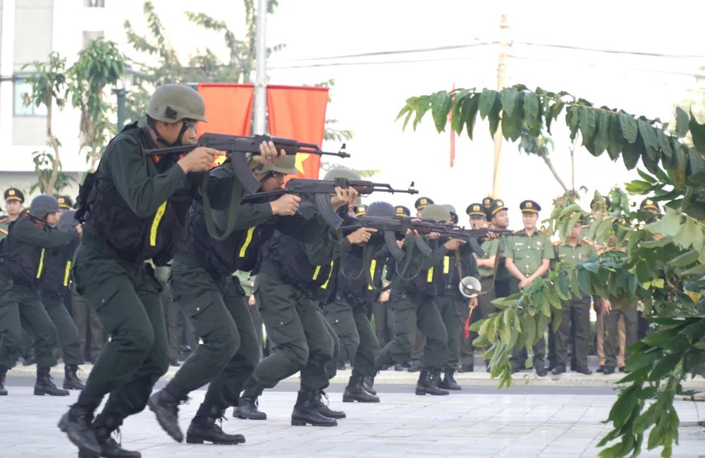 Trước khi buổi lễ ra quân, lực lượng chiến sĩ Cơ động Công an tỉnh Đồng Nai đã biểu diễn khí công thể hiện sức mạnh "mình đồng da sắt" và nổ súng, bắn đạn hơi cay bao vây trấn áp tội phạm.