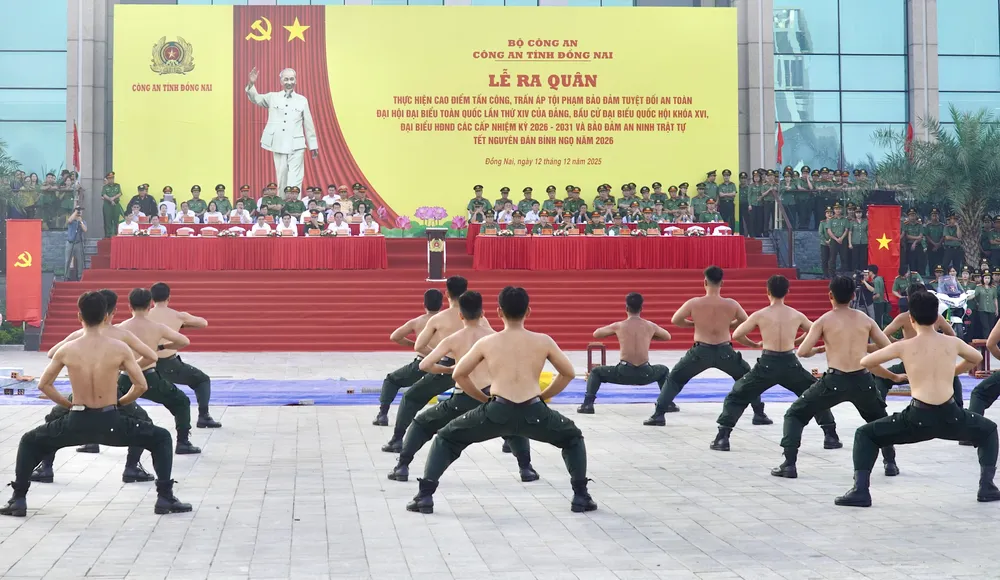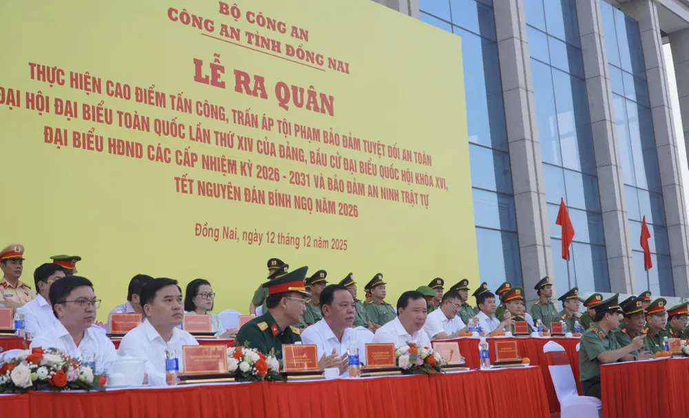 Ngày 12-12, Công an tỉnh Đồng Nai tổ chức Lễ ra quân thực hiện cao điểm tấn công, trấn áp tội phạm đảm bảo tuyệt đối an toàn Đại hội Đại biểu toàn quốc lần thứ XIV của Đảng, bầu cử Đại biểu Quốc hội khóa XVI, đại biểu HĐND các cấp nhiệm kỳ 2026- 2031 và đảm bảo An ninh trật tự Tết Nguyên đán Bính Ngọ 2026