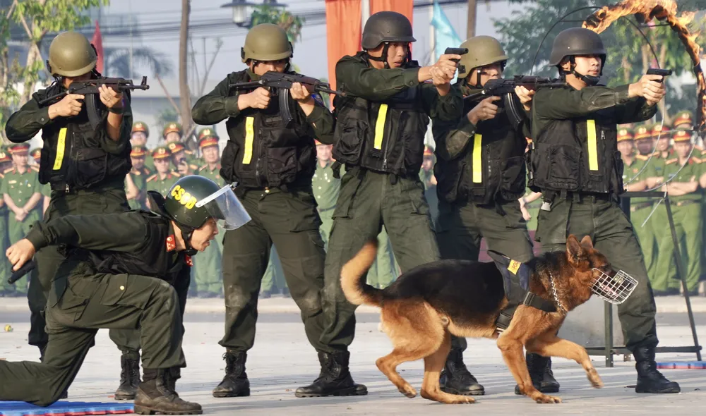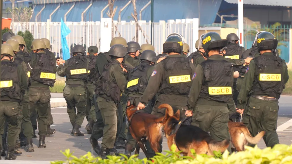 Lực lượng cơ động tiếp tục thực hiện việc trấn áp tội phạm nguy hiểm bằng súng, hơi cay.