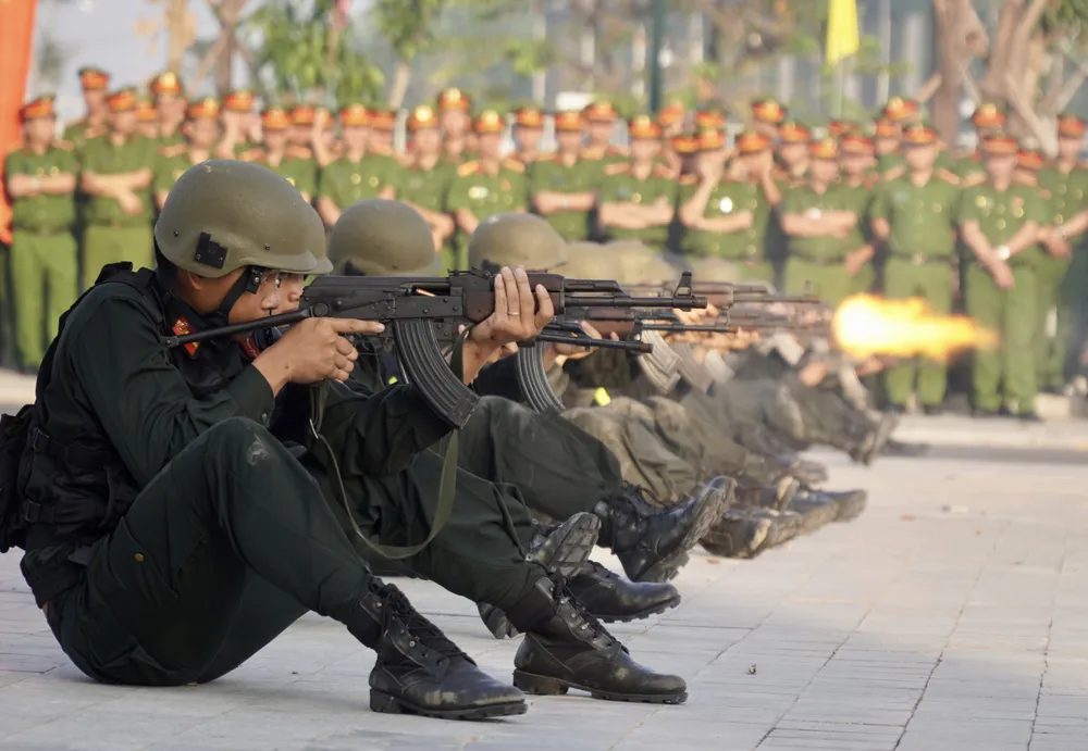 Các chiến sĩ đồng loạt nổ súng vào mục tiêu tội phạm đã được "khóa".