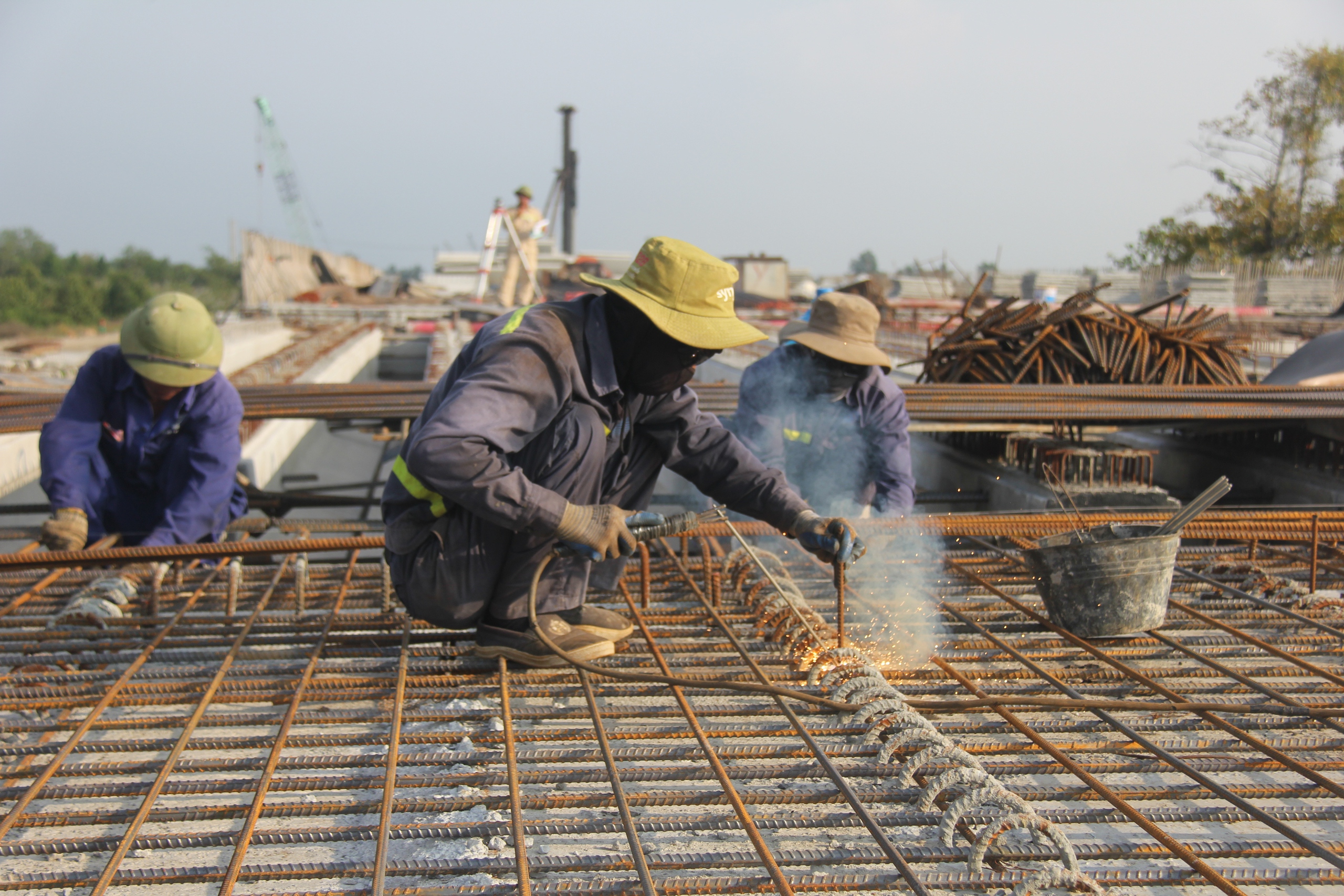 Những ngày qua trên công trường không khí thi công đang rất khẩn trương, hàng trăm kỹ sư, công nhân đang tăng tốc thi công 14 cầu vượt trên tuyến chính.