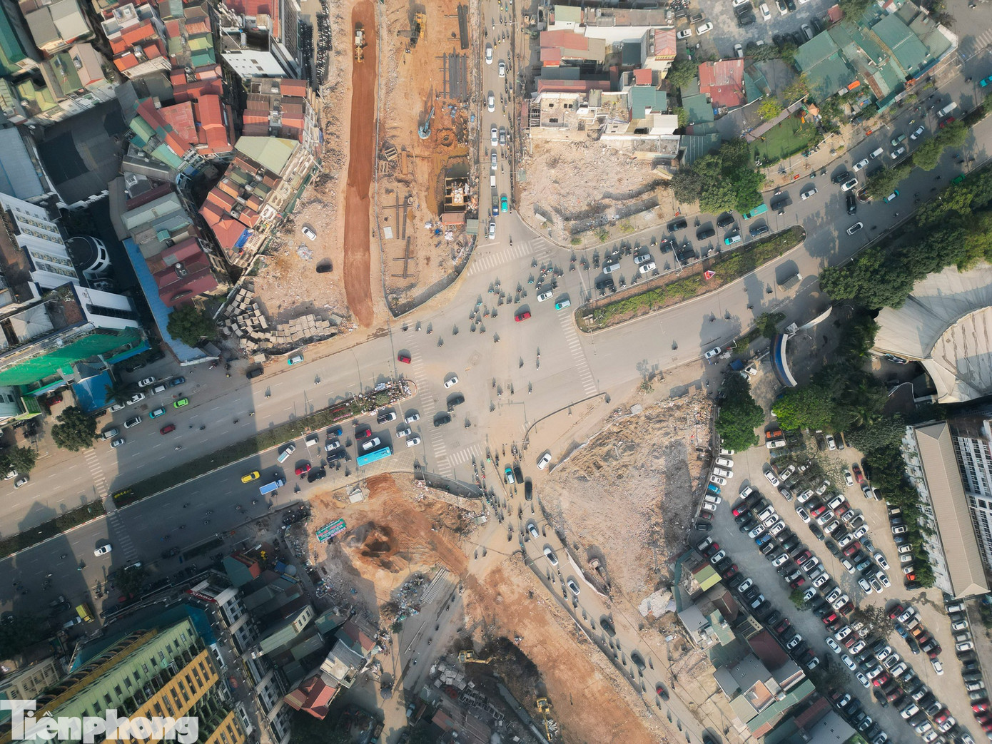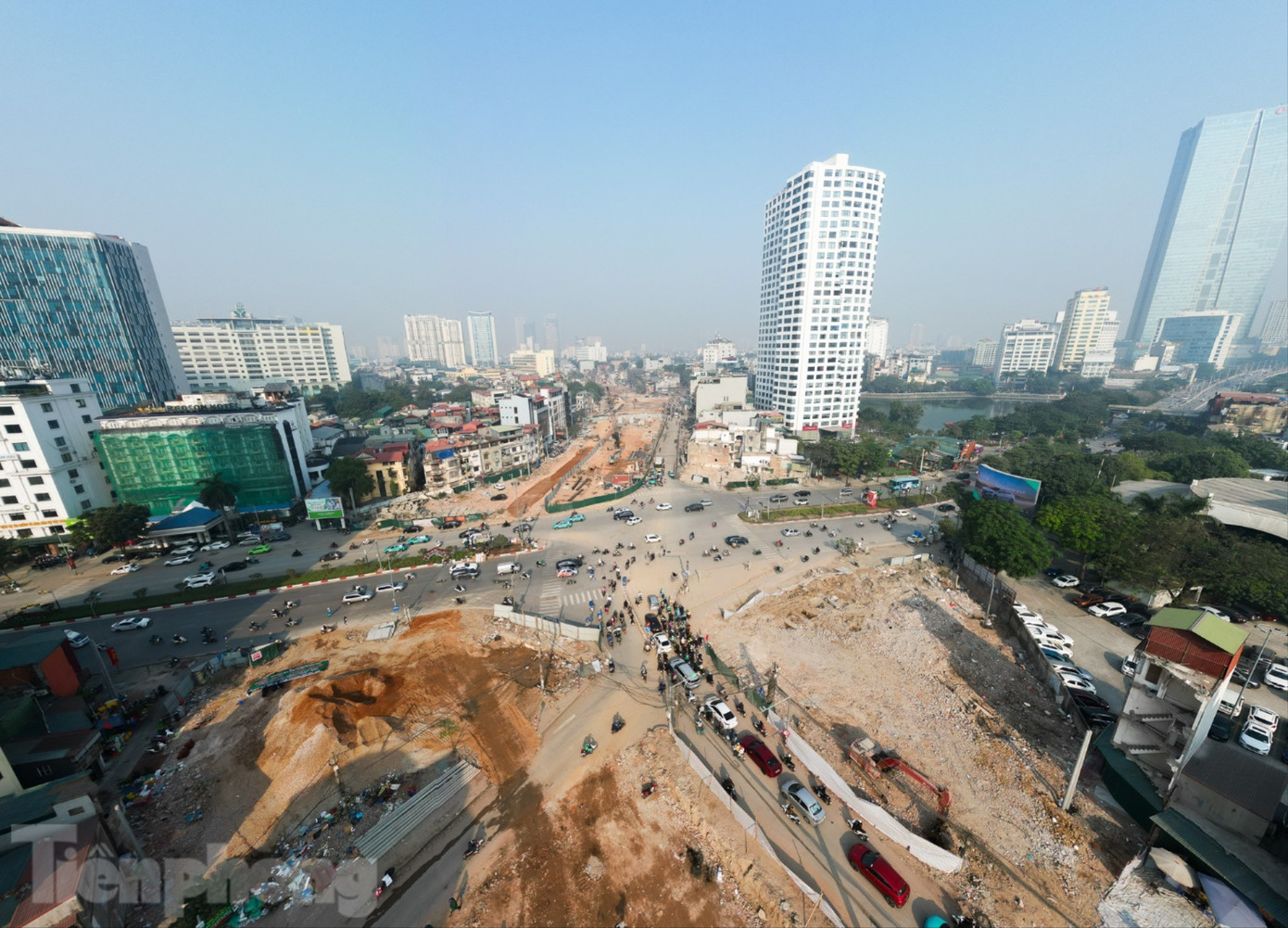 Khu vực thi công cầu vượt tại nút giao Láng Hạ - Giảng Võ.