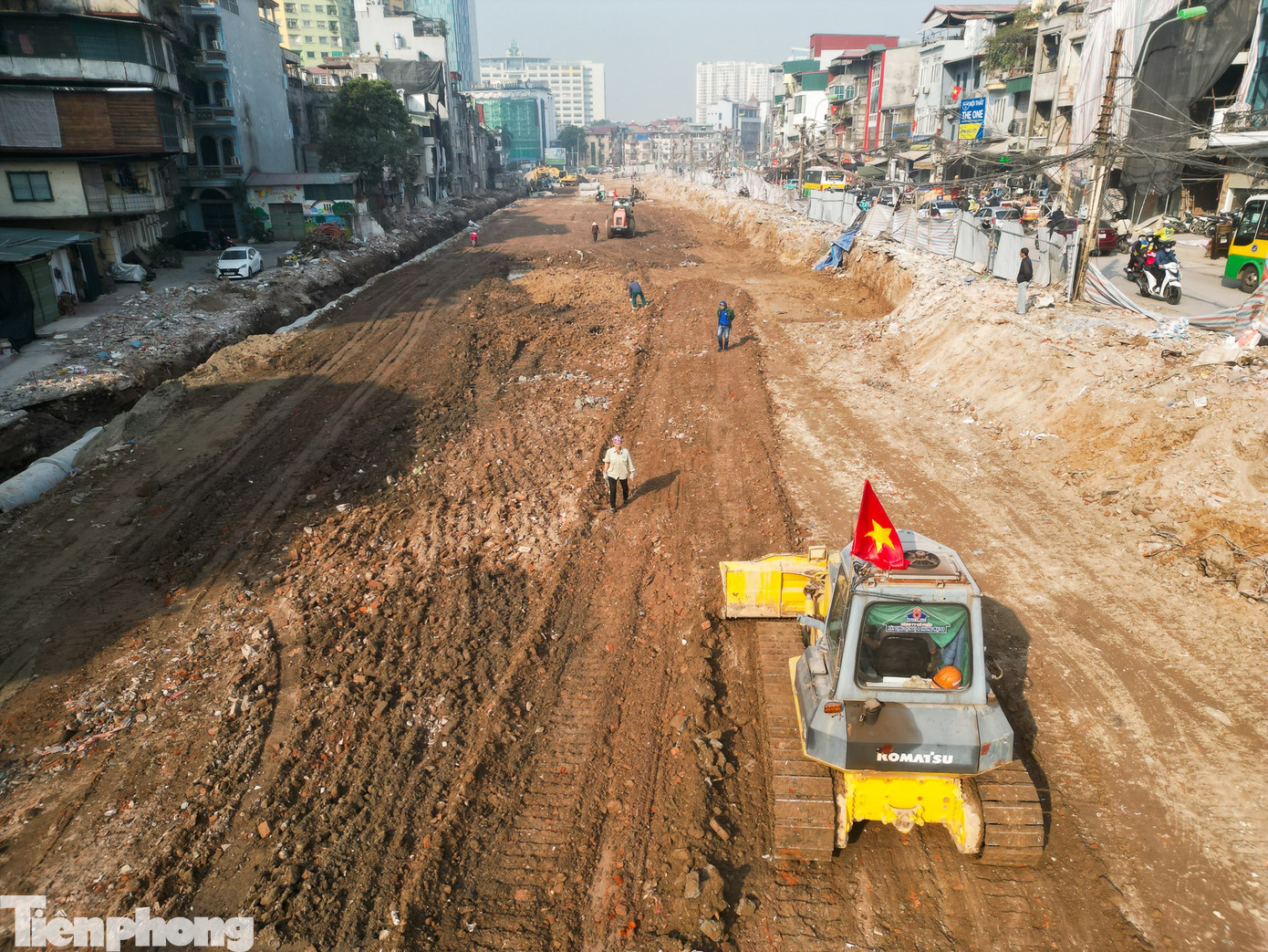 Sau khi tháo dỡ, san lấp mặt bằng, tuyến Hoàng Cầu – Voi Phục đã rộng mở, hình hài con đường mới dần lộ diện, tạo trục giao thông thông suốt hơn.