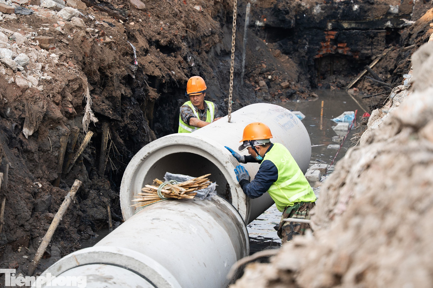 Hệ thống cống thoát nước đang được thi công.