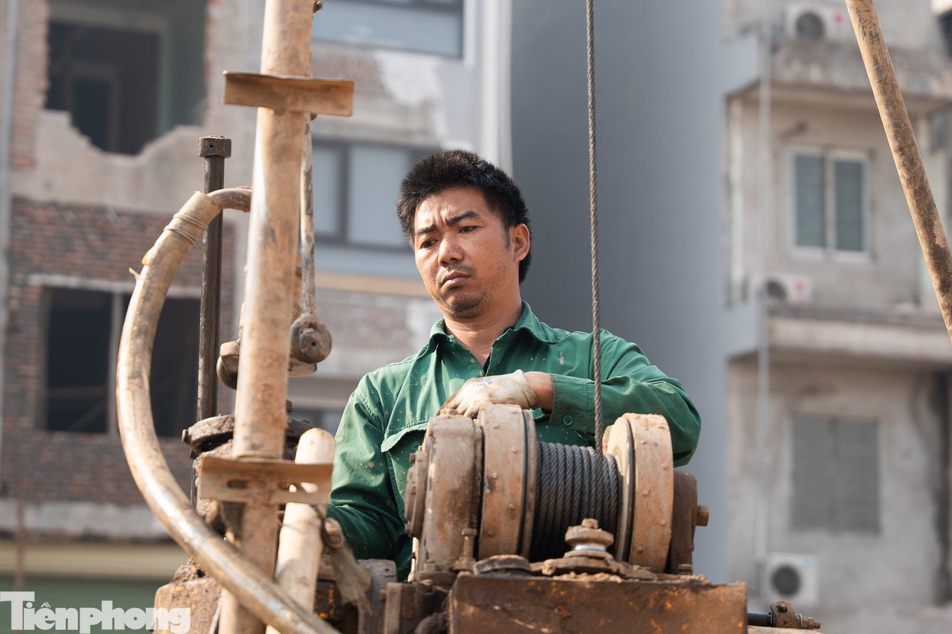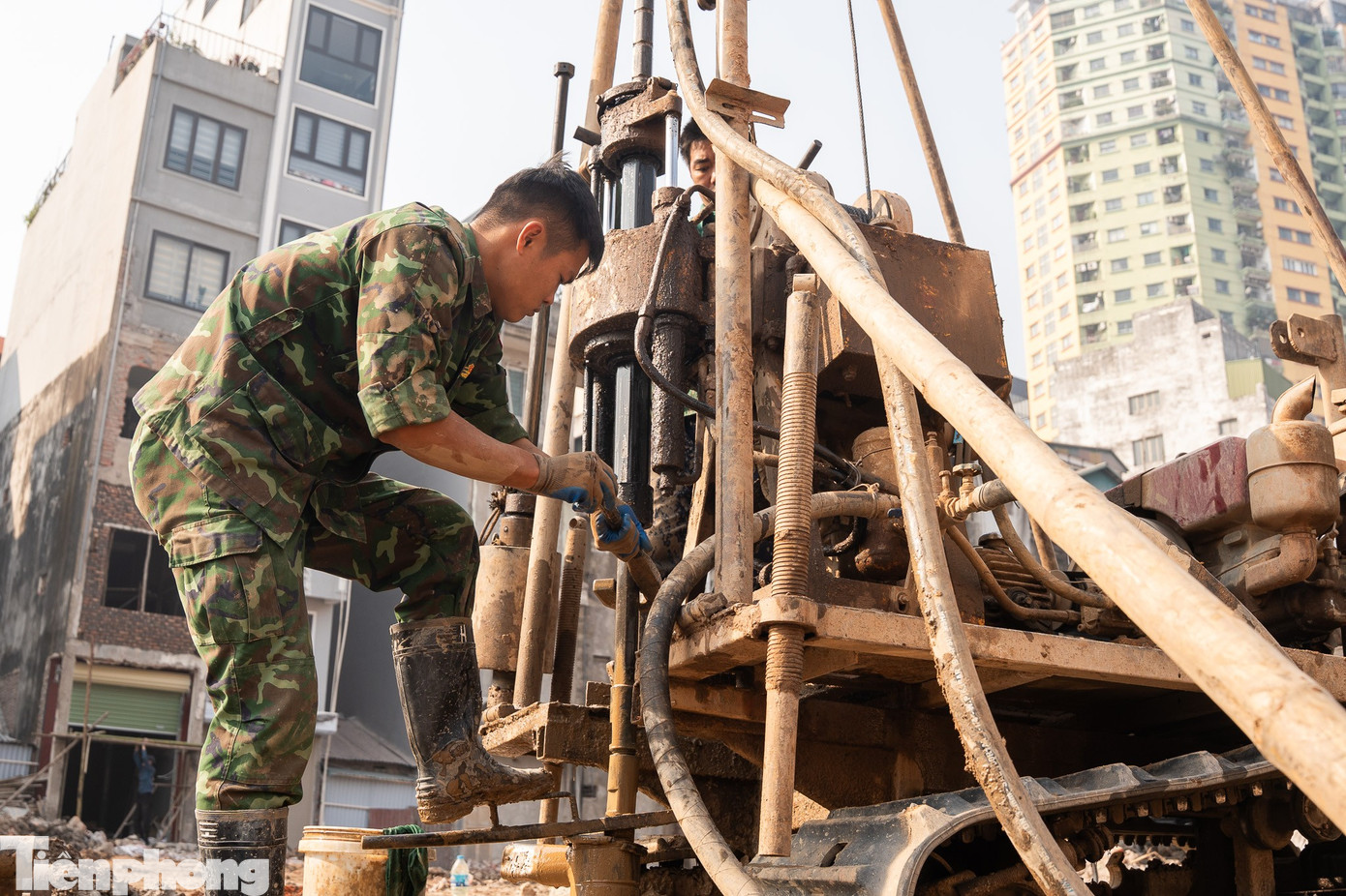 Công nhân tiến hành khoan thăm dò trên tuyến đường.