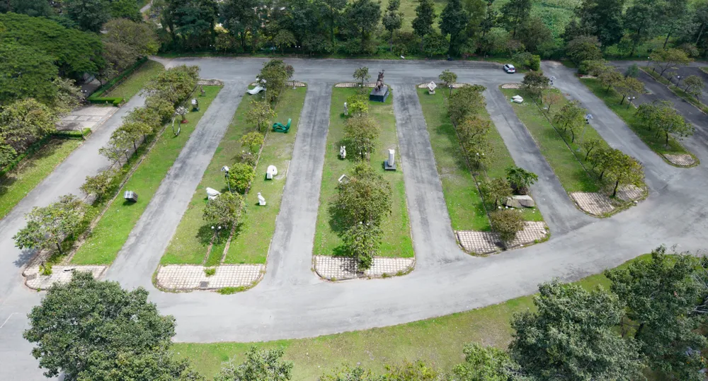 Bãi đỗ xe rộng lớn bên trong khuôn viên công viên.