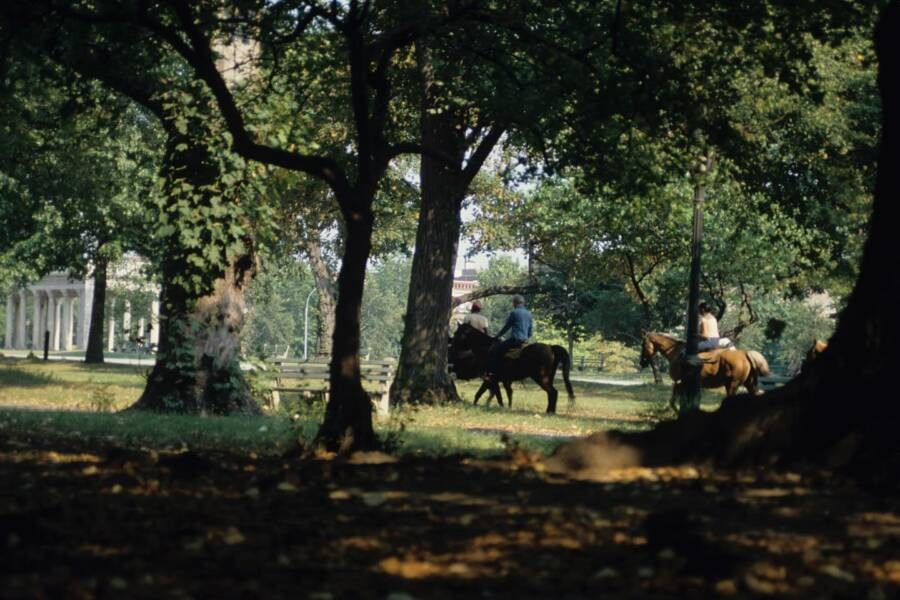Một nhóm người cưỡi ngựa qua công viên. Ảnh: Facebook.