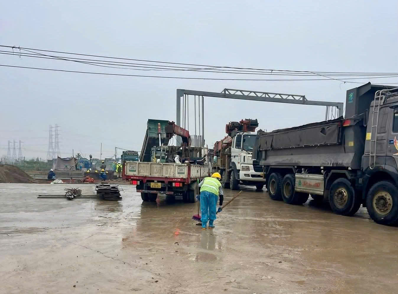 Chia sẻ với phóng viên, một nữ công nhân vệ sinh môi trường cho biết, mỗi ngày, với lượng xe ra vào lớn, chị phải liên tục quét dọn, thu gom đất cát, rác thải để đảm bảo khu vực thi công luôn sạch sẽ, thông thoáng, phục vụ tốt cho quá trình vận hành của các phương tiện và hoạt động xây dựng.