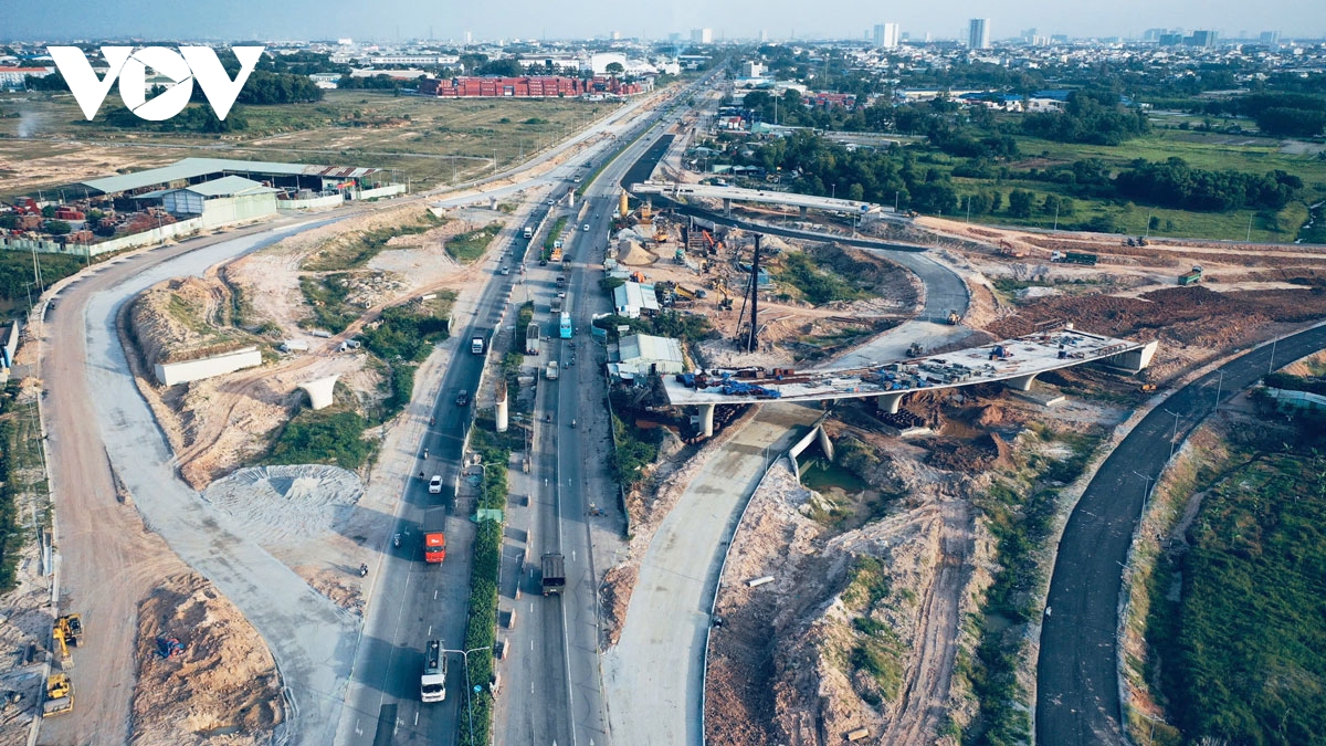 Tại nút giao Bình Chuẩn (giao với đường Mỹ Phước - Tân Vạn), các đơn vị thi công đang tổ chức tăng ca, tăng kíp liên tục. Đến nay, phần đường tại khu vực này đã cơ bản hoàn thành công tác san lấp và lu lèn nền hạ. Phần cầu đang hình thành.