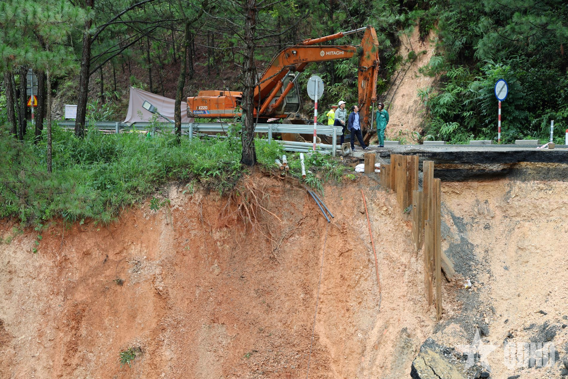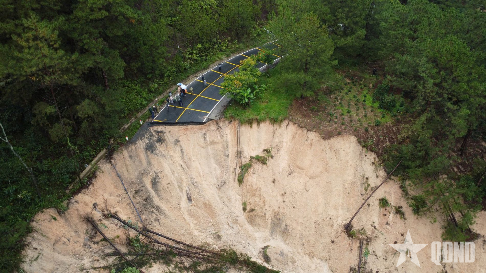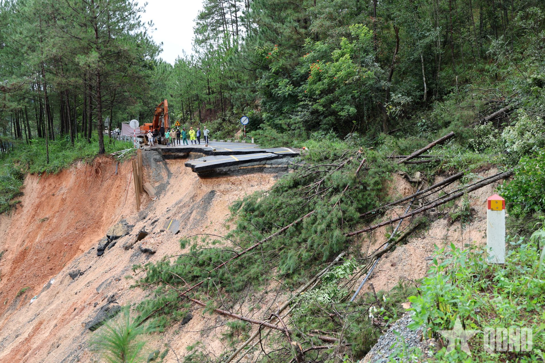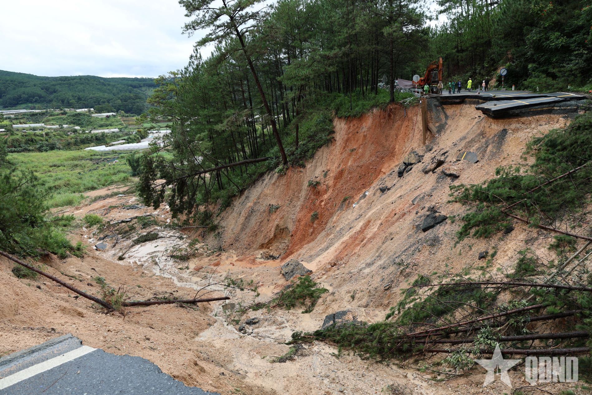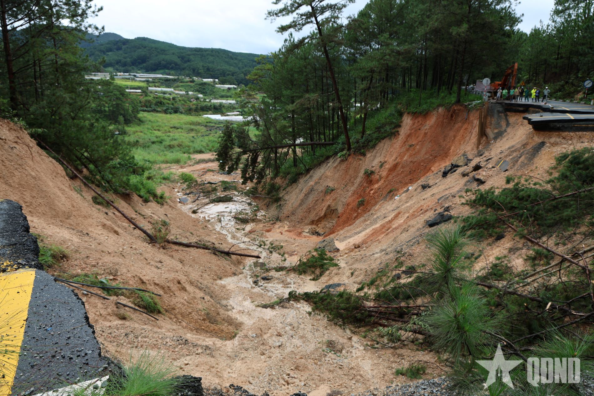 Taly âm của đường đèo bị sạt sâu xuống vực.