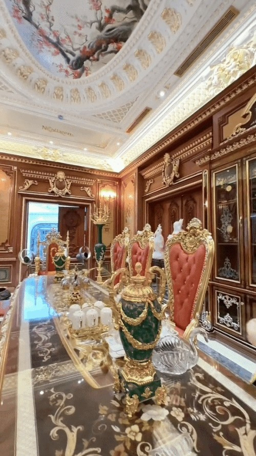 Bên trong dinh thự, nội thất được cho là trang trí bằng vàng, đá quý. Ảnh: FBNV