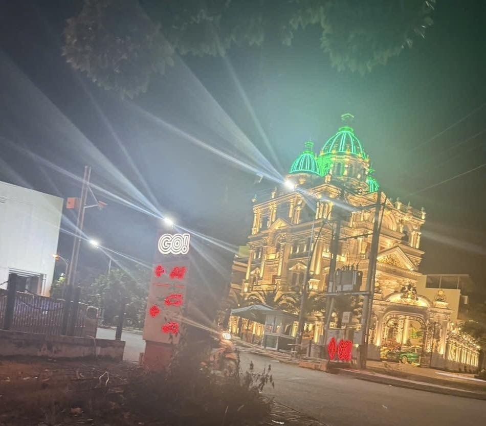 Toàn bộ dinh thự được lắp hệ thống đèn rực rỡ. Ban đêm, cả tòa nhà phát sáng nổi bật. Ảnh: @bengoc602, @cuc0606, Huy Nguyễn