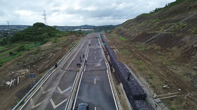 Đoạn đường cao tốc Bắc - Nam dài khoảng 500m bị sạt trượt nghiêm trọng