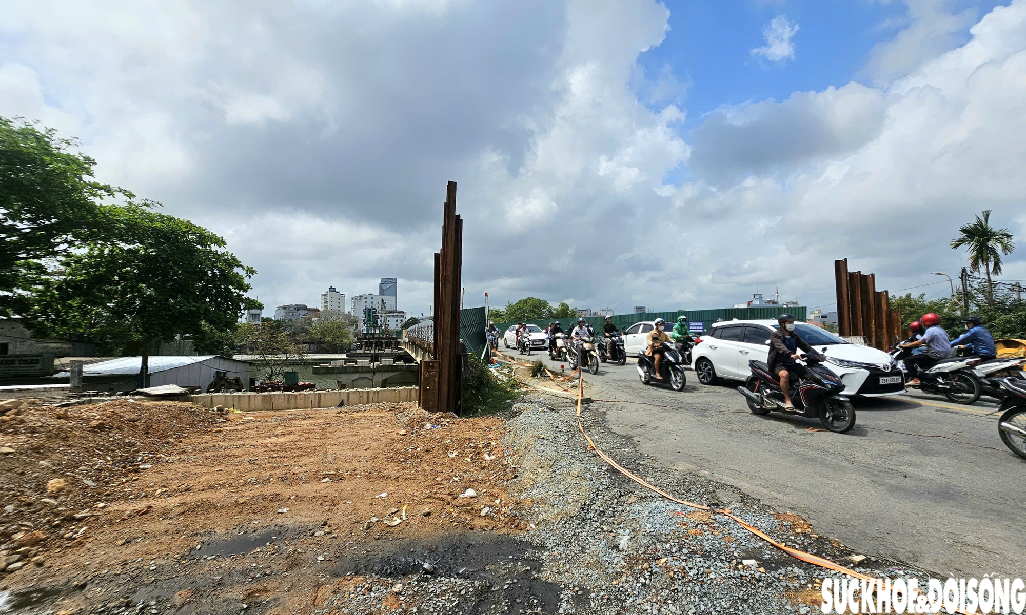 Cận cảnh công trường dự án nâng cấp, mở rộng cầu Vỹ Dạ.
