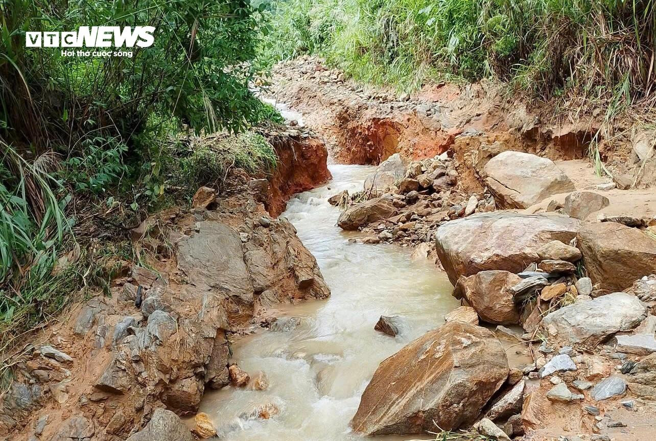 Hiện người dân muốn đến trung tâm xã phải đi bộ qua con đường mòn dài 1km do chính quyền địa phương và người dân mới phát dọn dọc sườn núi qua các điểm sạt lở, chia cắt. Đi bộ vượt đồi, núi đến trung tâm xã gùi được một bao gạo về nhà cũng mất gần 4 tiếng đồng hồ.