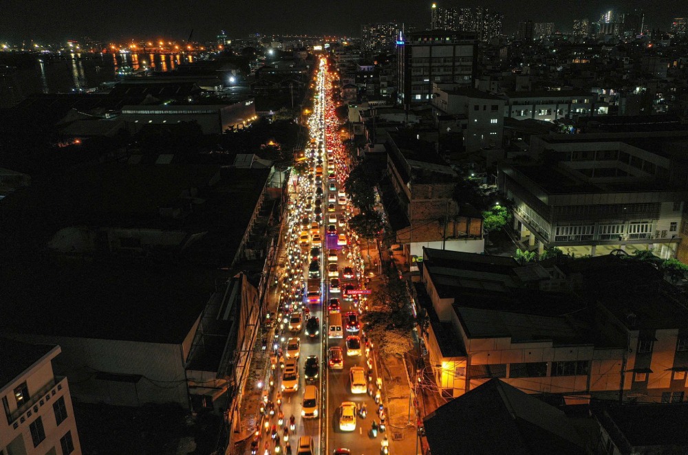 Đường Nguyễn Tất Thành dài khoảng 2,5km, từ cầu Khánh Hội đến cầu Tân Thuận, hiện có 4 làn xe nhưng lưu lượng phương tiện ngày càng đông, khiến tuyến đường này thường xuyên kẹt xe.