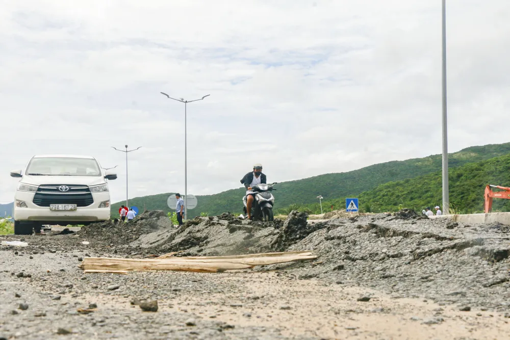 Trao đổi với PV, ông Hoàng Văn Khánh, Trưởng ban Quản lý dự án hạ tầng- Ban Quản lý khu kinh tế và khu công nghiệp tỉnh Khánh Hòa (chủ đầu tư dự án) nói đoạn đường bị hỏng thuộc dự án đường giao thông ngoài cảng trung chuyển quốc tế Vân Phong (giai đoạn 1).