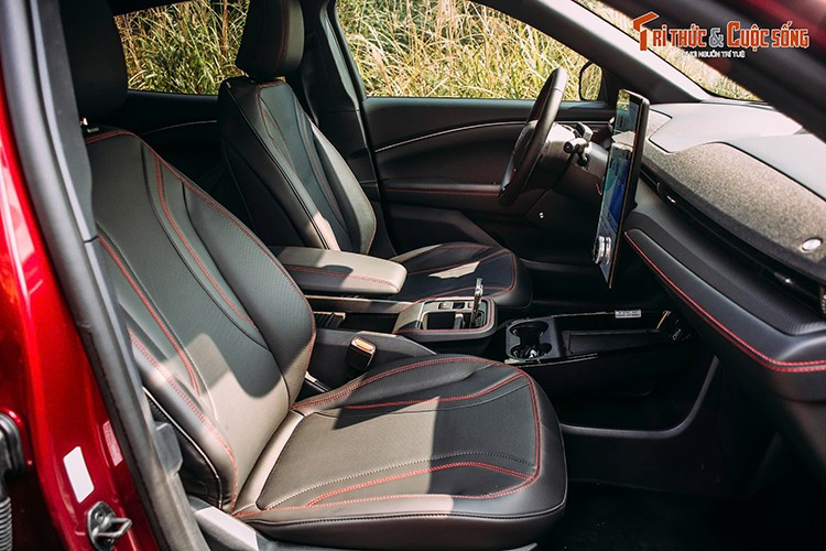 Nội thất Ford Mustang Mach-E được trang bị các vật liệu cao cấp. Hàng ghế trước trang bị chỉnh điện 10 hướng với ghế lái hỗ trợ nhớ vị trí. Hàng ghế sau có thể gập 60/40 với tựa tay trung tâm và giá để cốc.
