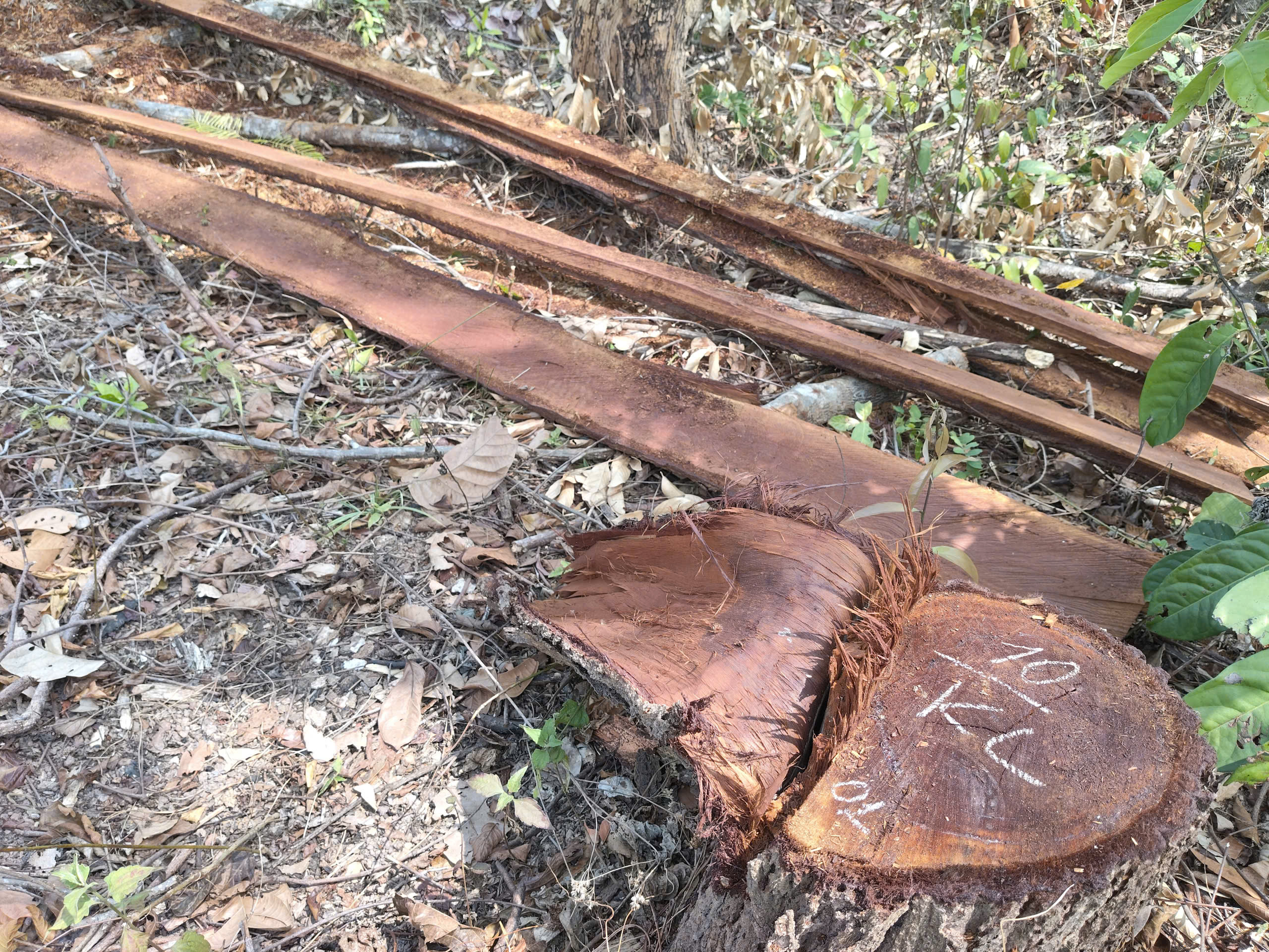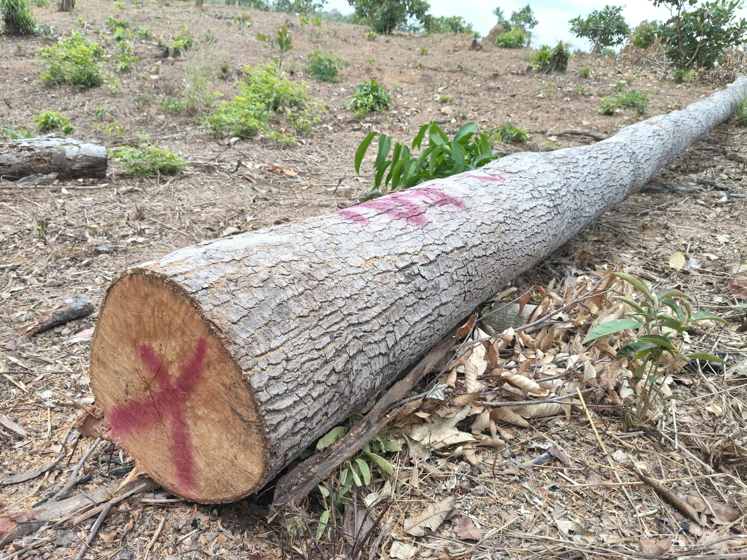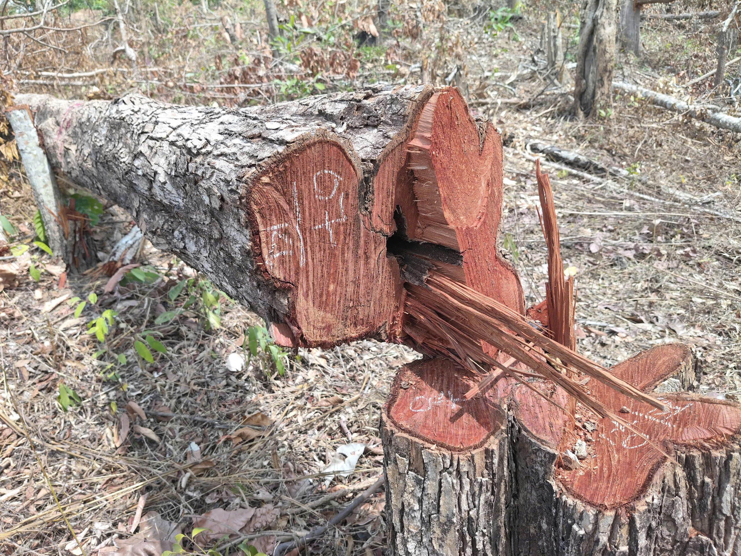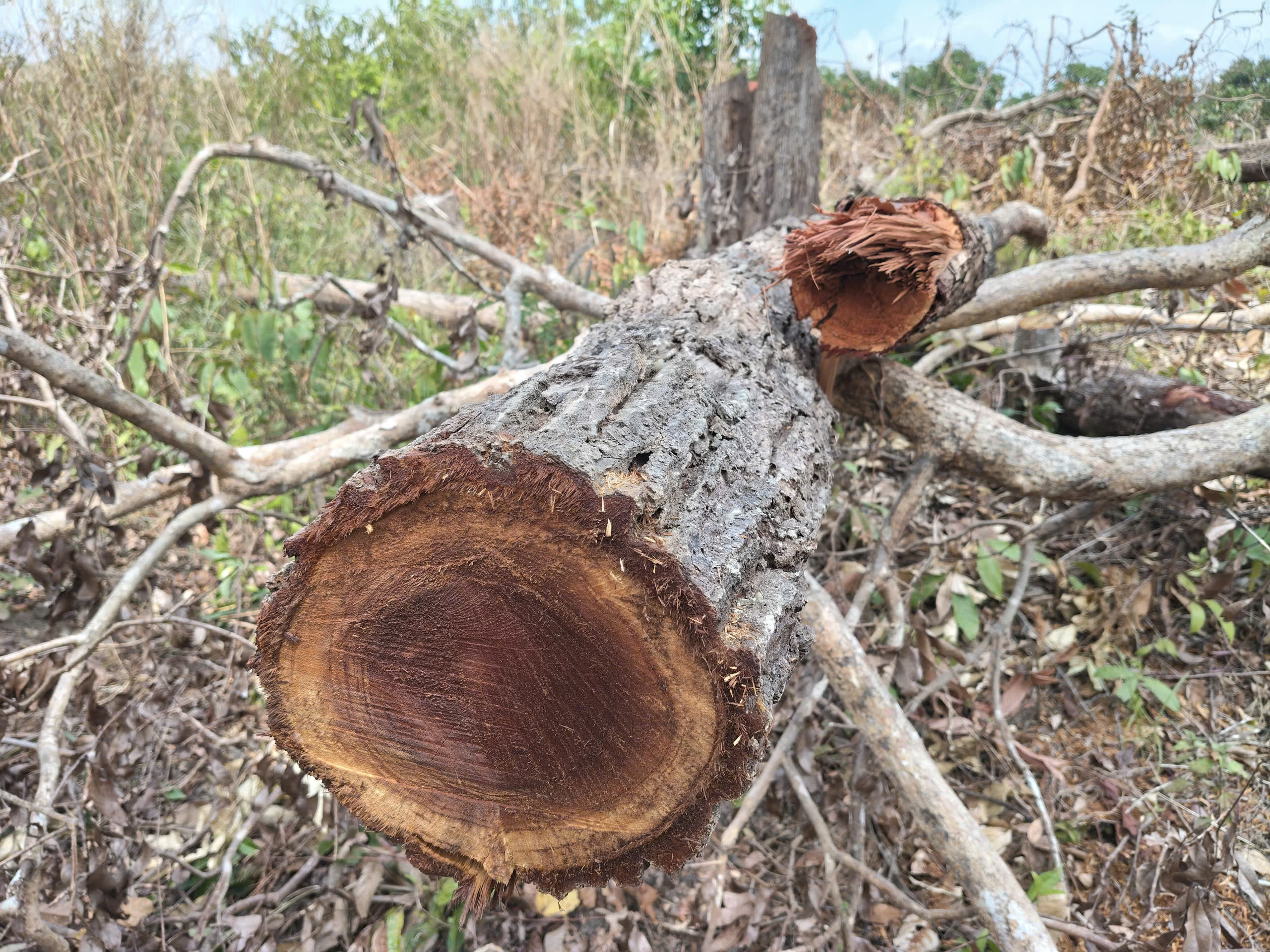 Lâm tặc xẻ lấy lõi gỗ mang đi, chỉ còn bìa
