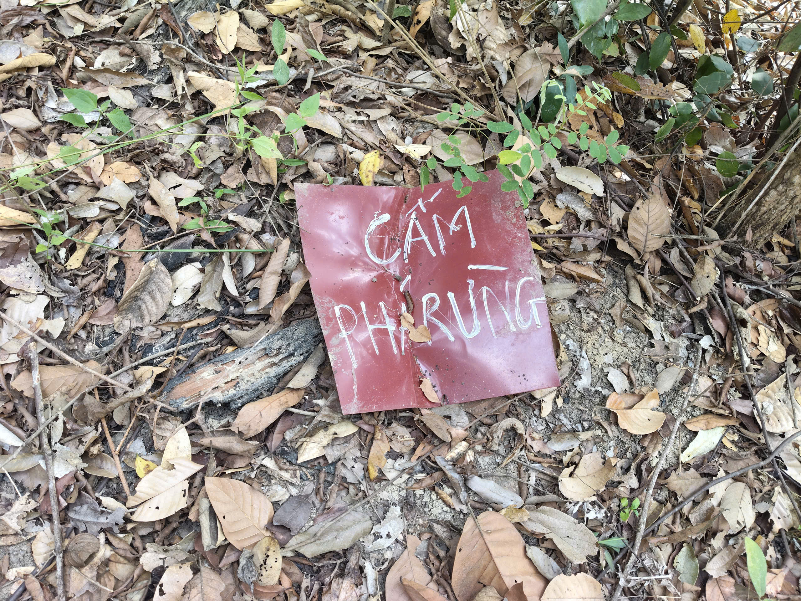 Bảng cấm phá rừng nằm rơi xuống đất, cạnh vị trí rừng bị phá