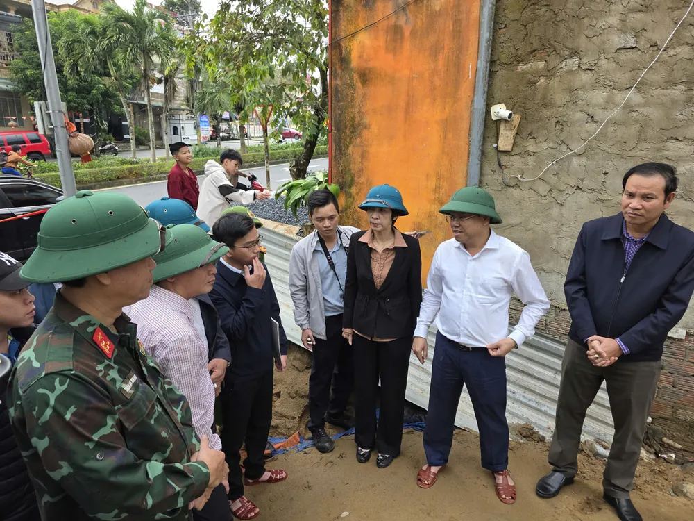 Lãnh đạo tỉnh Quảng Trị có mặt tại hiện trường chỉ đạo các đơn vị tìm hiểu nguyên nhân và chăm lo việc ăn ở của người dân bị ảnh hưởng. Ảnh: MINH TRƯỜNG