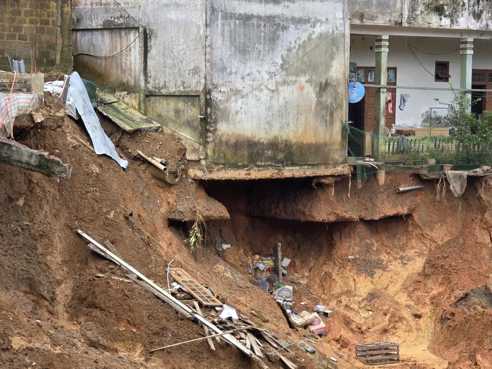 Cấu kiện phần móng bị xói lở gần như hoàn toàn. Không còn chức năng chịu lực cho căn nhà. Ảnh: MINH TRƯỜNG
