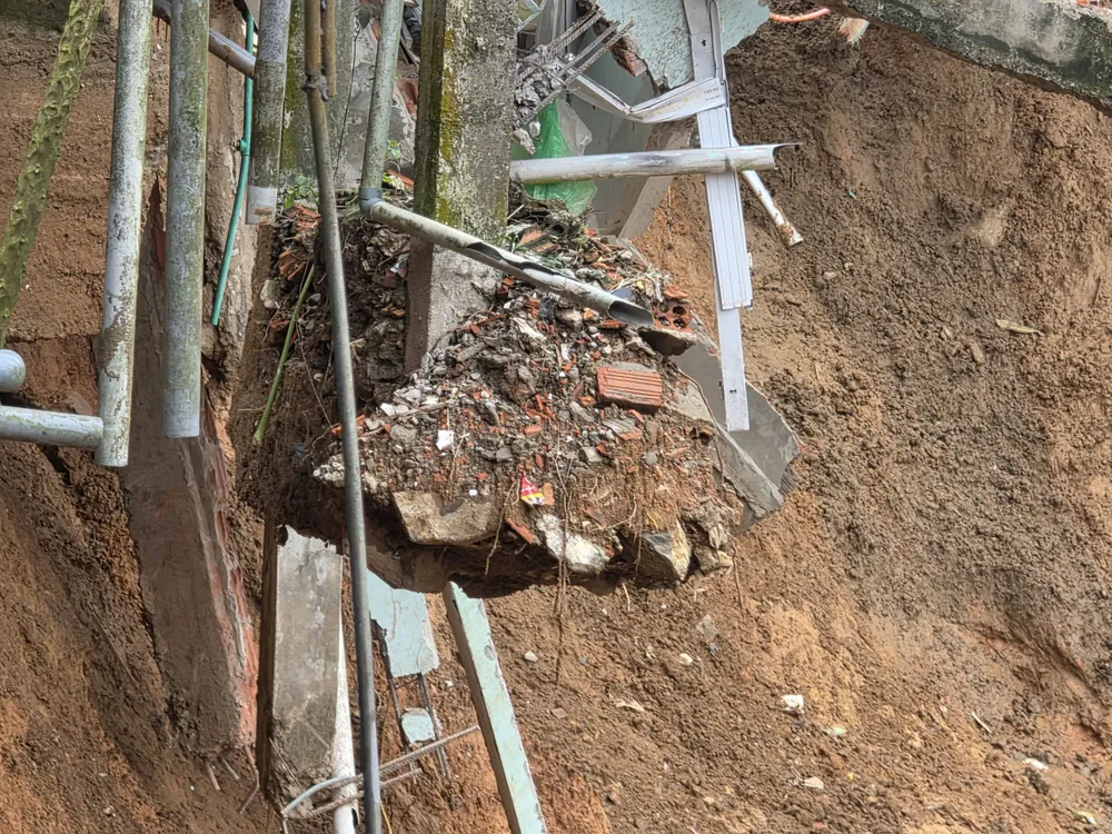 Móng của căn nhà 3 tầng trơ trọi giữa không trung. Ảnh: MINH TRƯỜNG