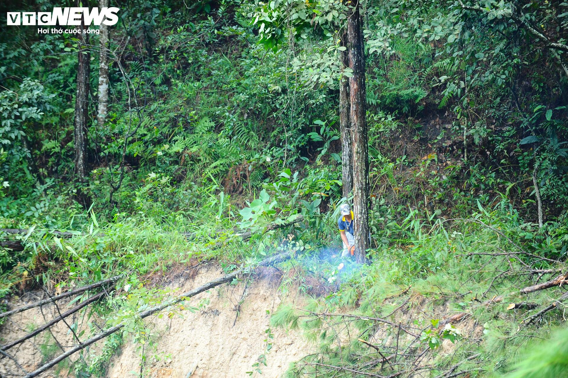 Xung quanh điểm sạt lở, cây cối ngã đổ hàng loạt.