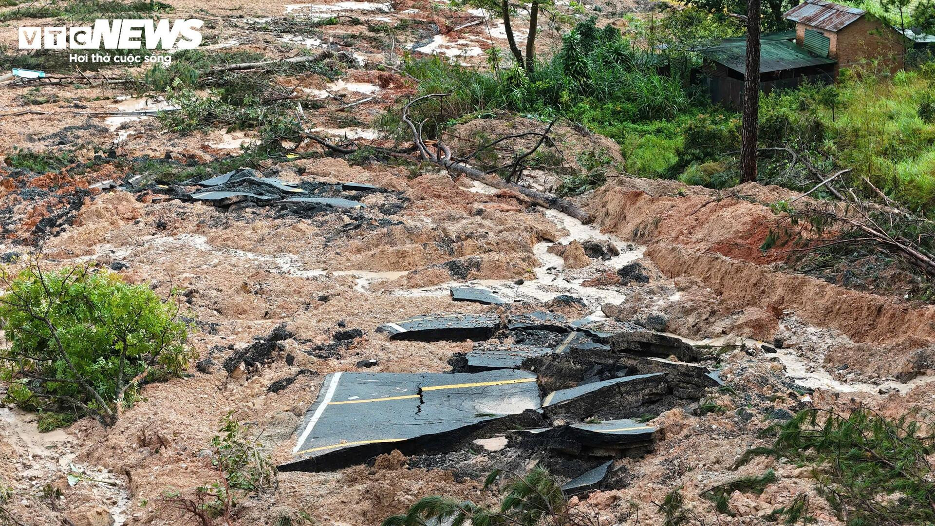 Đất đá, cây cối, nền đường tan vỡ, đổ ập khắp nơi.