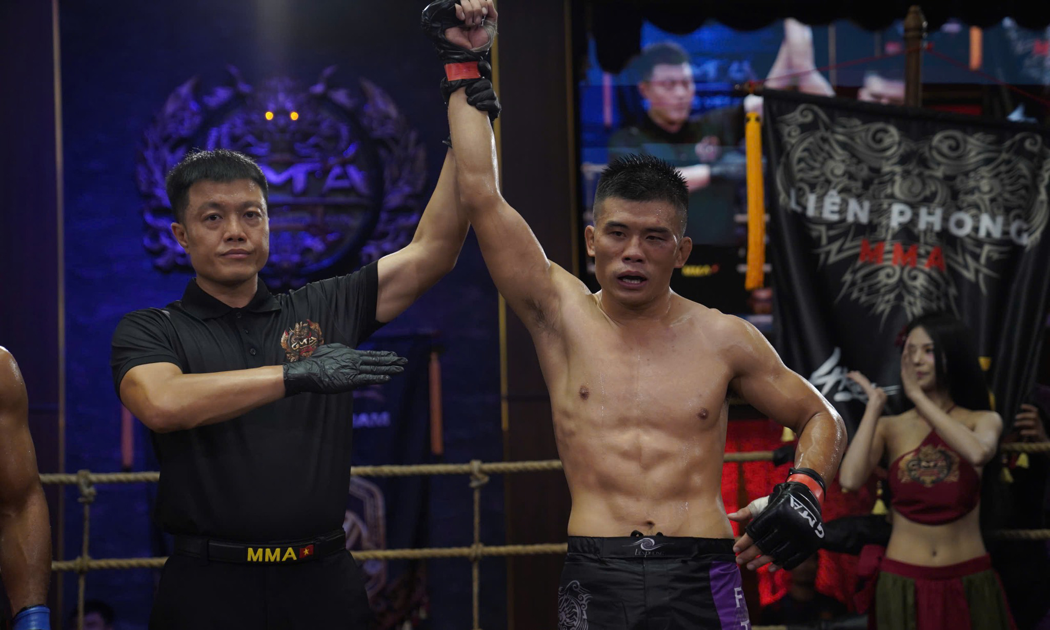 Màn so tài giữa Nguyễn Vũ Phương Hoài (võ đường Liên Phong) và đối thủ người Campuchia Long La là trận đấu chính của sự kiện võ thuật tổng hợp GMA 12 diễn ra tại TP.HCM tối 25/4. Học trò của Johnny Trí Nguyễn giành chiến thắng khuất phục bằng đòn siết (submission) trong hiệp 2.
