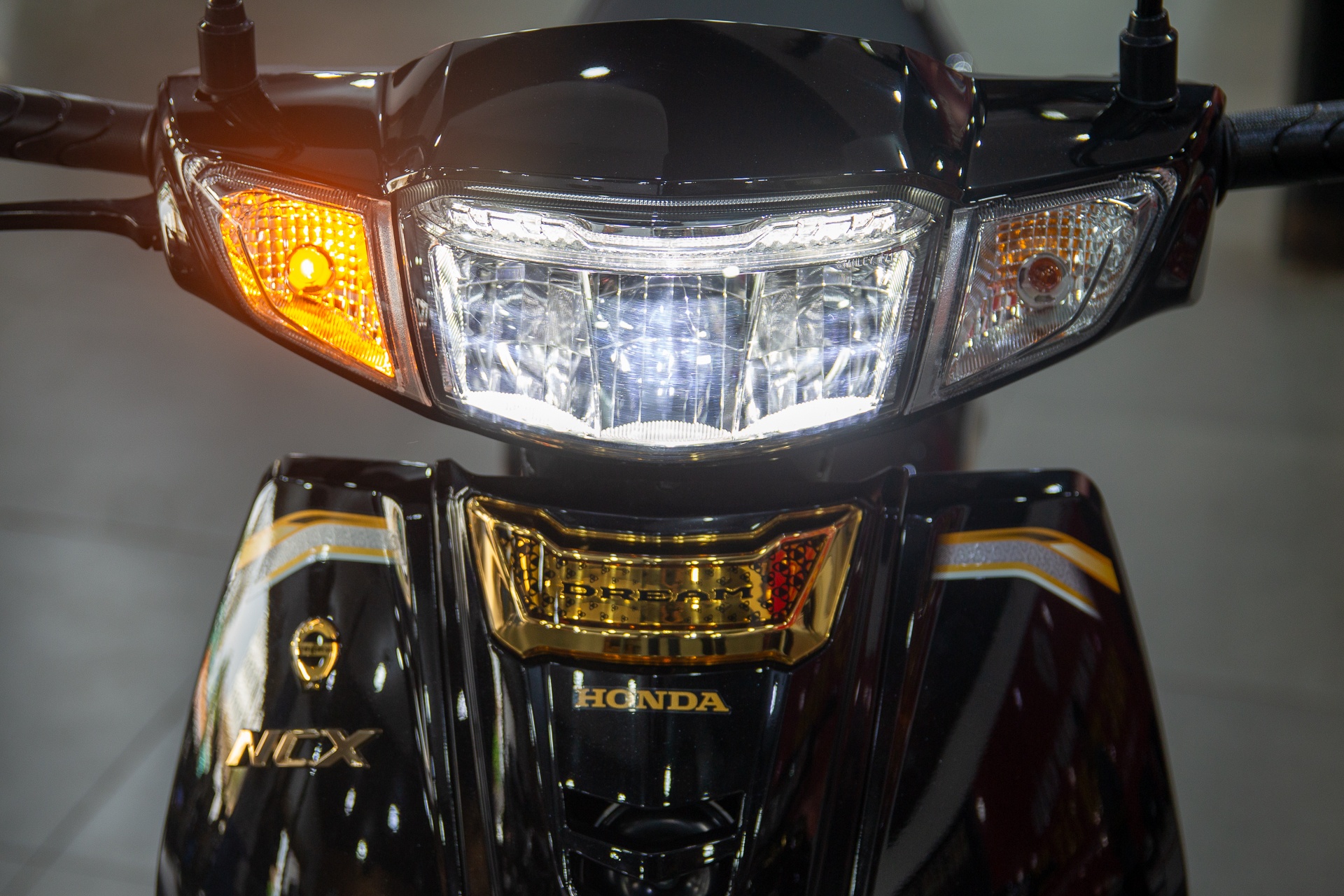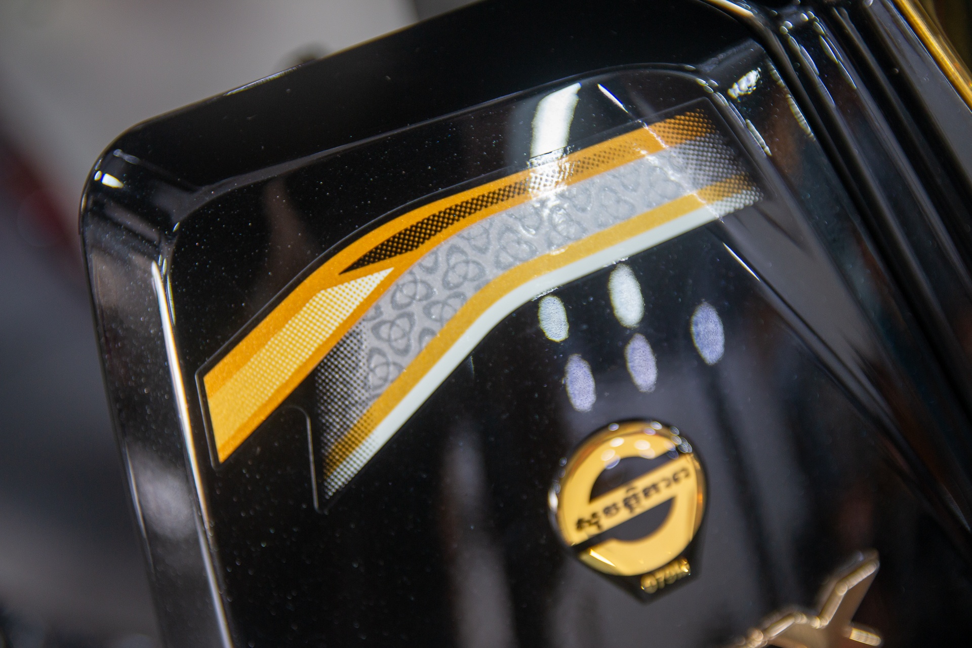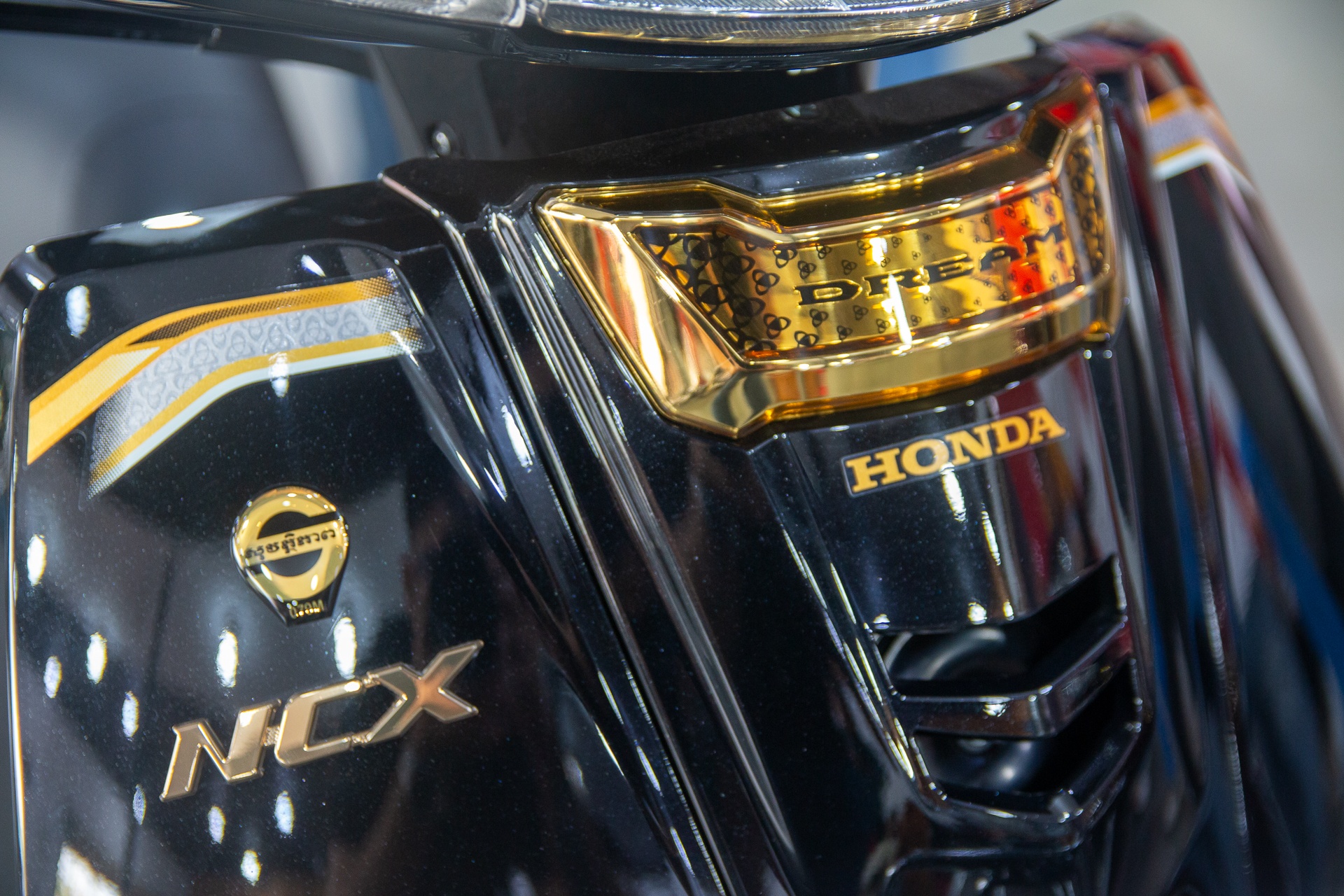 Điểm nhấn của Honda Dream NCX 2026 nằm ở bộ tem phối giữa sắc vàng-bạch kim với họa tiết hoa Rumdul - quốc hoa của đất nước Campuchia.