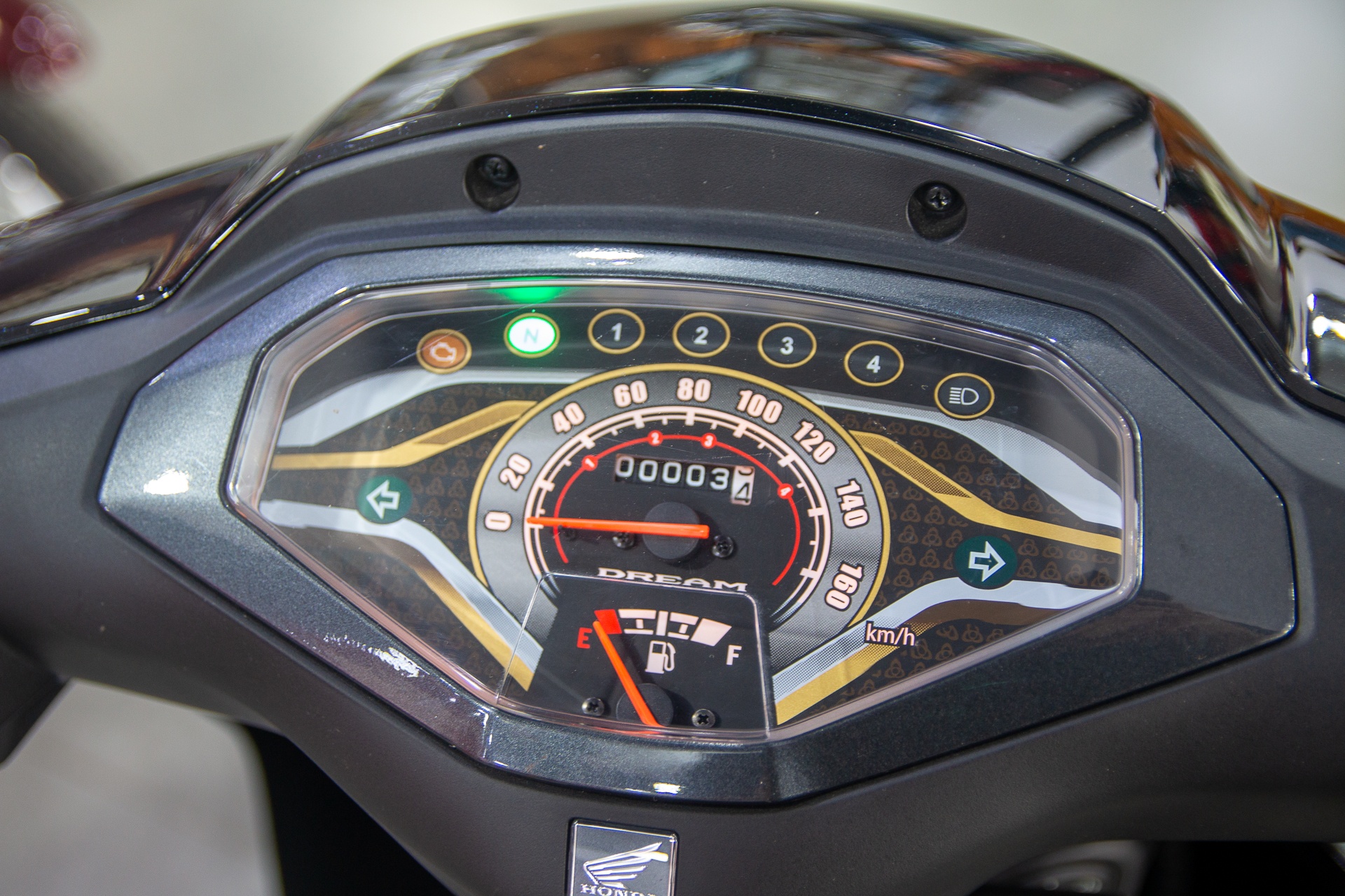 Mặt đồng hồ analog đậm chất cổ điển của Honda Dream NCX 2026. Khu vực này cũng có các họa tiết hoa Rumdul.
