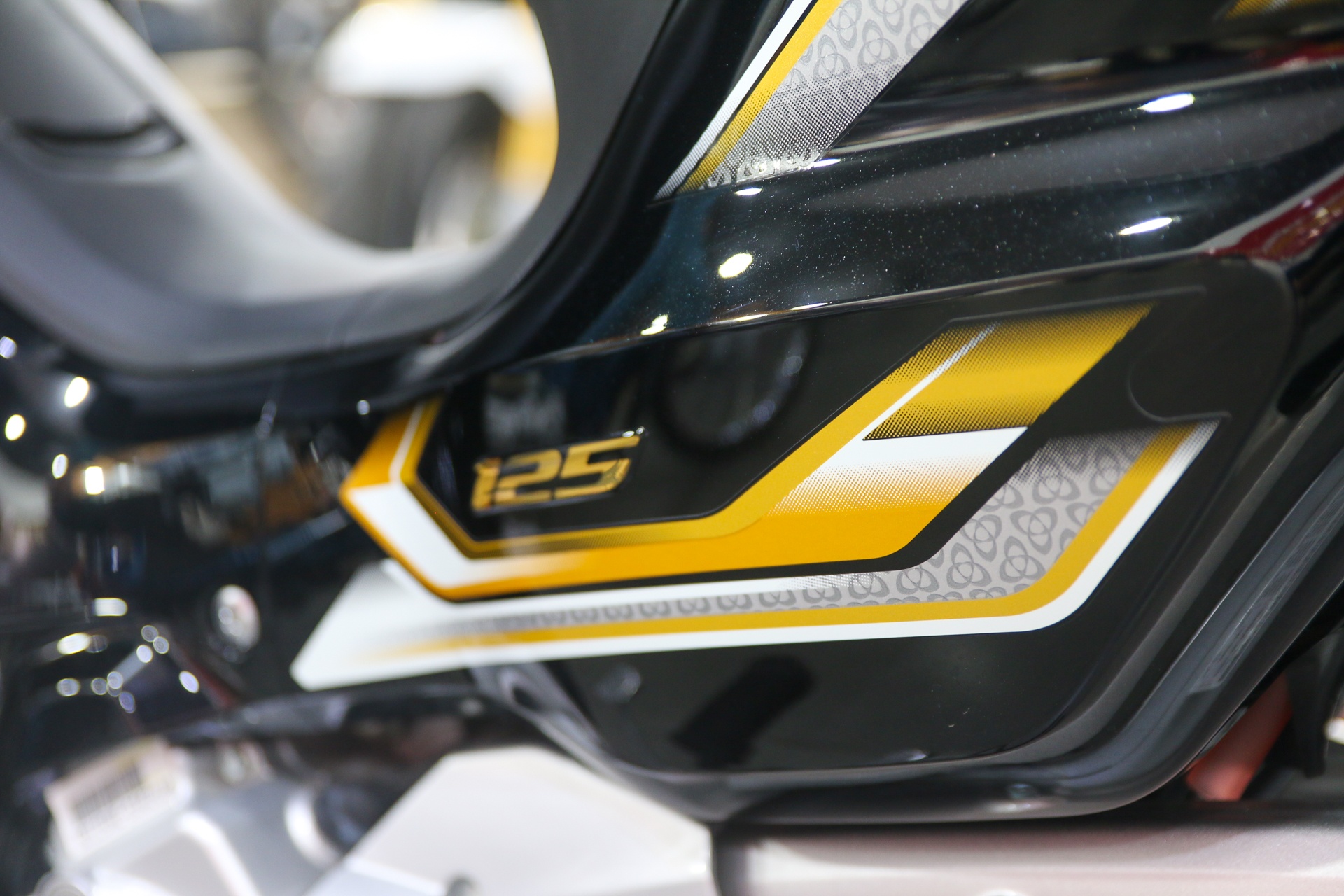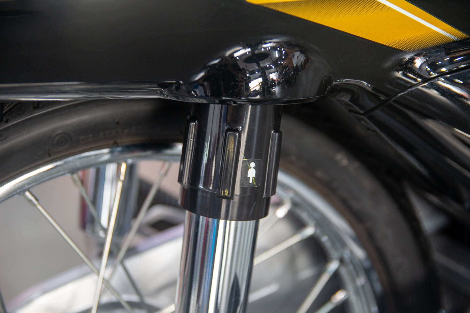 Chất cổ điển cũng được nhìn thấy ở phần tay dắt xe bọc nhựa màu đen.