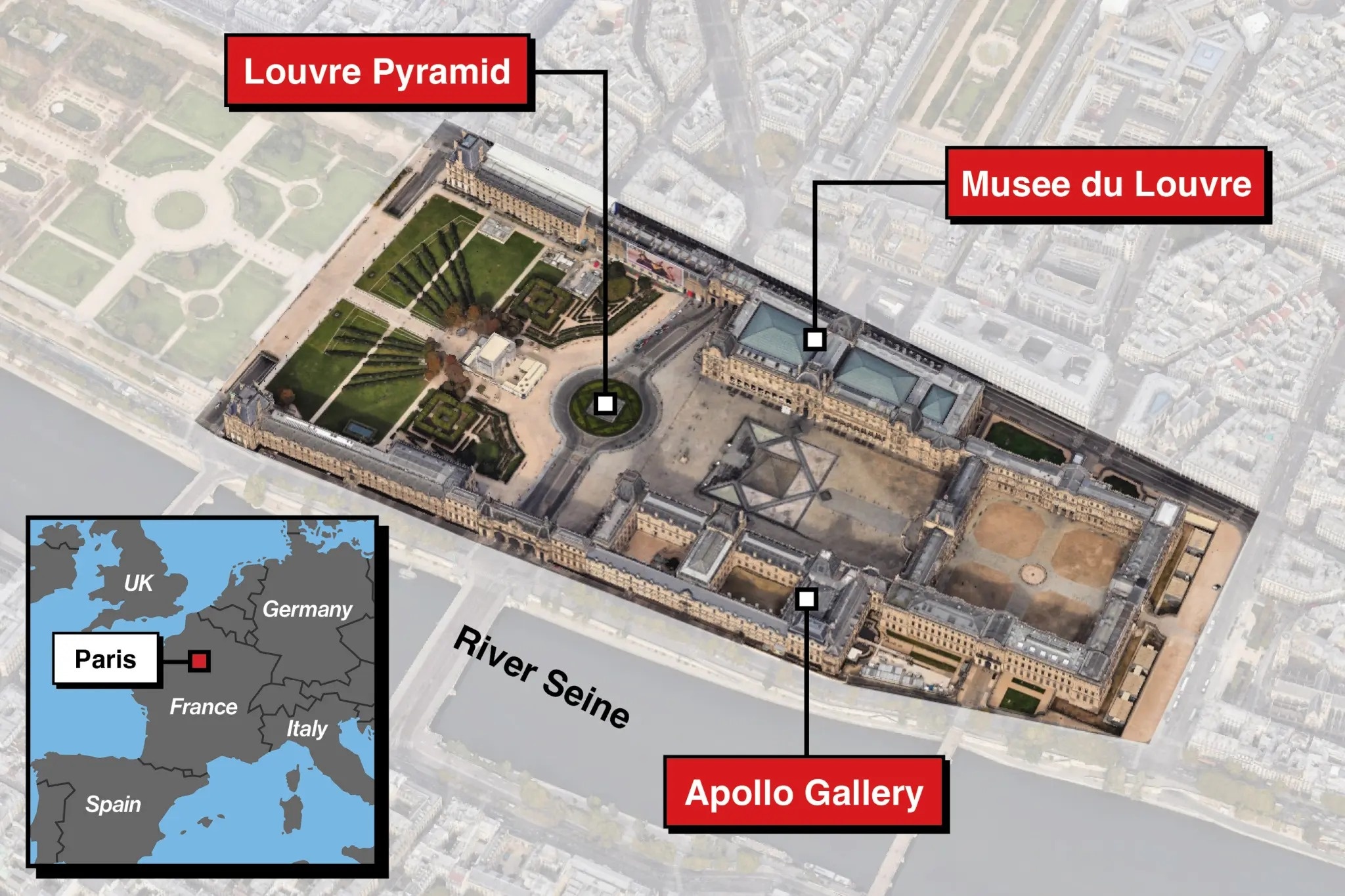 Theo thông cáo của Bộ Văn hóa Pháp, vụ đột nhập đã kích hoạt hệ thống báo động tại cửa sổ ngoài của phòng trưng bày Apollon - nơi lưu giữ các báu vật hoàng gia - cùng hai tủ trưng bày có độ bảo mật cao.